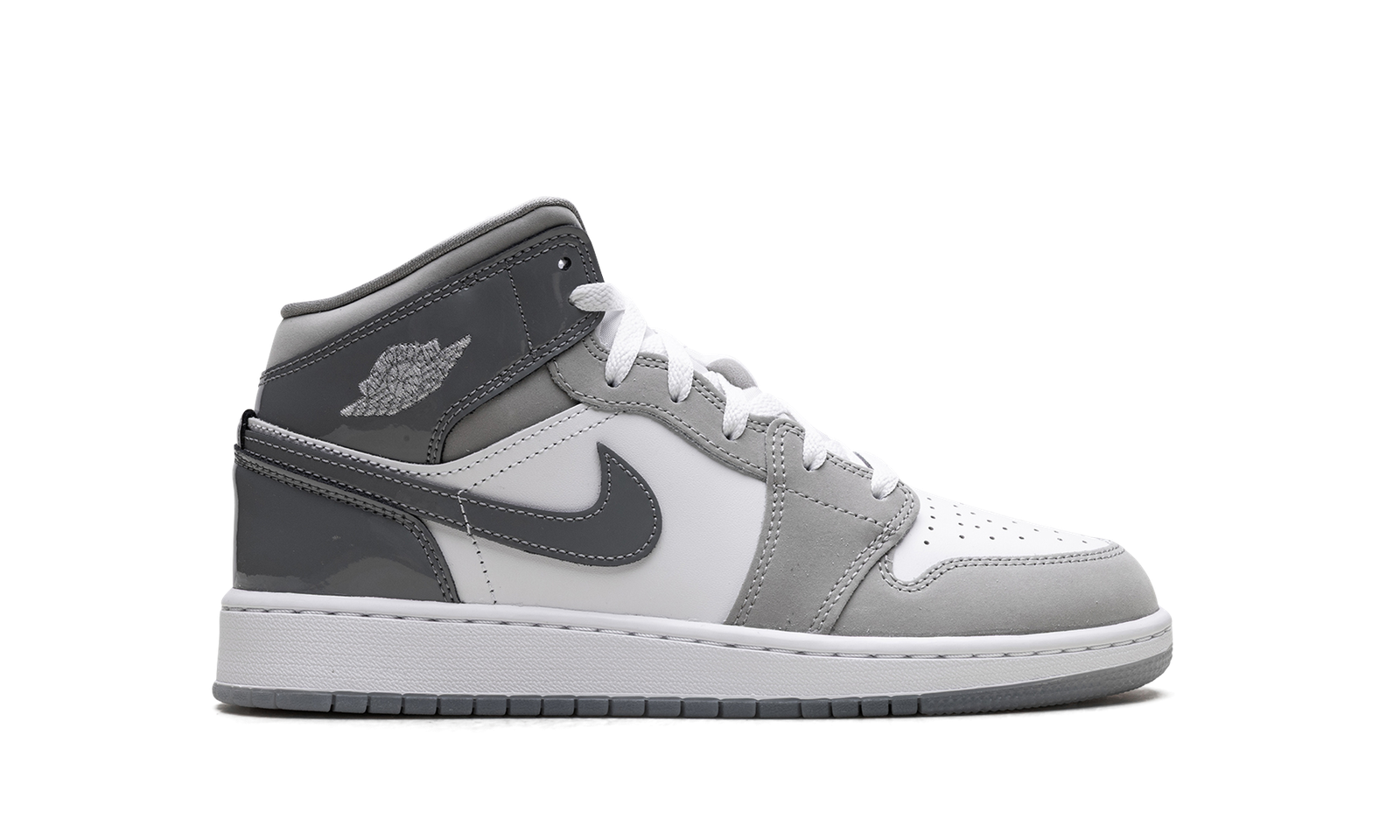 Own a timeless piece of sneaker history with the Jordan 1 Mid GS, affectionately dubbed the “White Medium Cool Grey.” Specifically sized for grade schoolers, this mid-top iteration maintains the iconic design and comfort of the original. The clean color blocking features a crisp white leather base contrasted by “Medium Cool Grey” overlays and a black Swoosh, making it versatile for any outfit. Air cushioning provides all-day comfort, ensuring classic style and legendary performance.