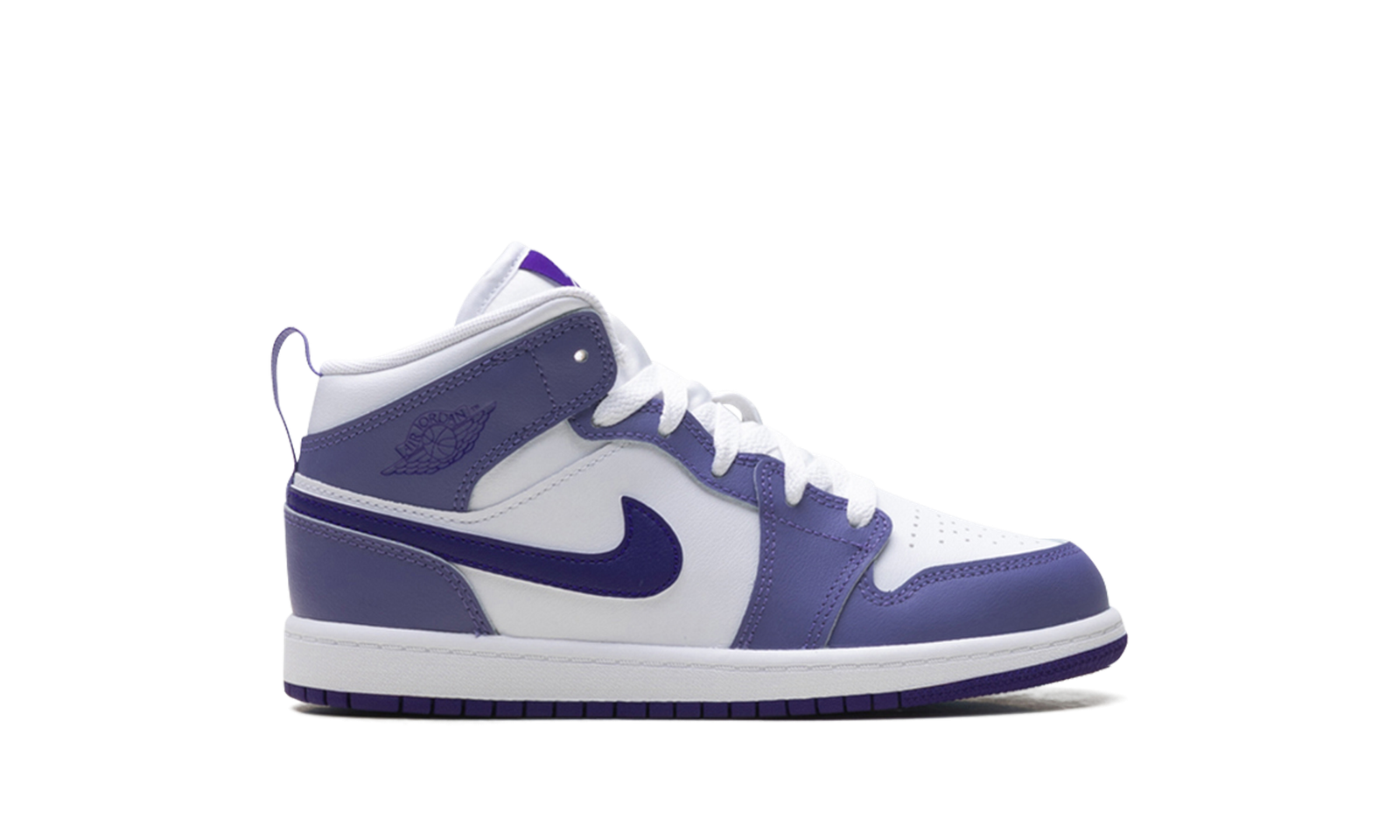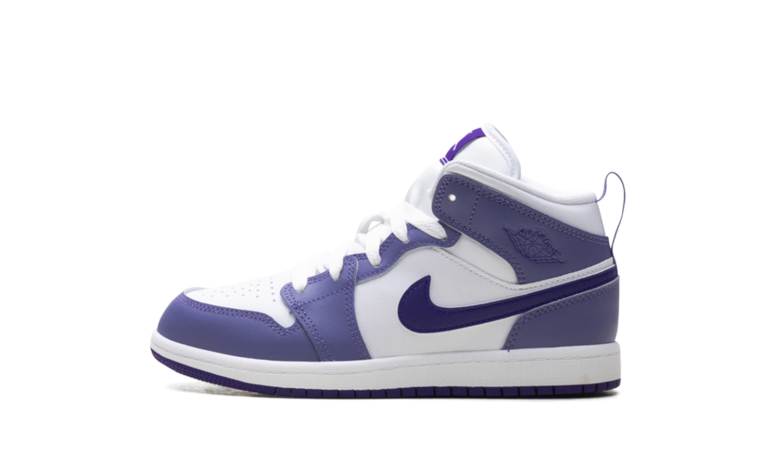 Watch your little superstar shine in the Jordan 1 Mid PS “Dusty Amethyst White Court Purple.” This Preschool-sized sneaker takes Michael Jordan’s iconic first shoe and drenches it in a playful, vibrant colorway. Featuring a mix of crisp White leather, Dusty Amethyst panels, and bold Court Purple accents, this shoe is built for style and play. The mid-cut design with a padded collar gives little feet excellent support and comfort for all their adventures.