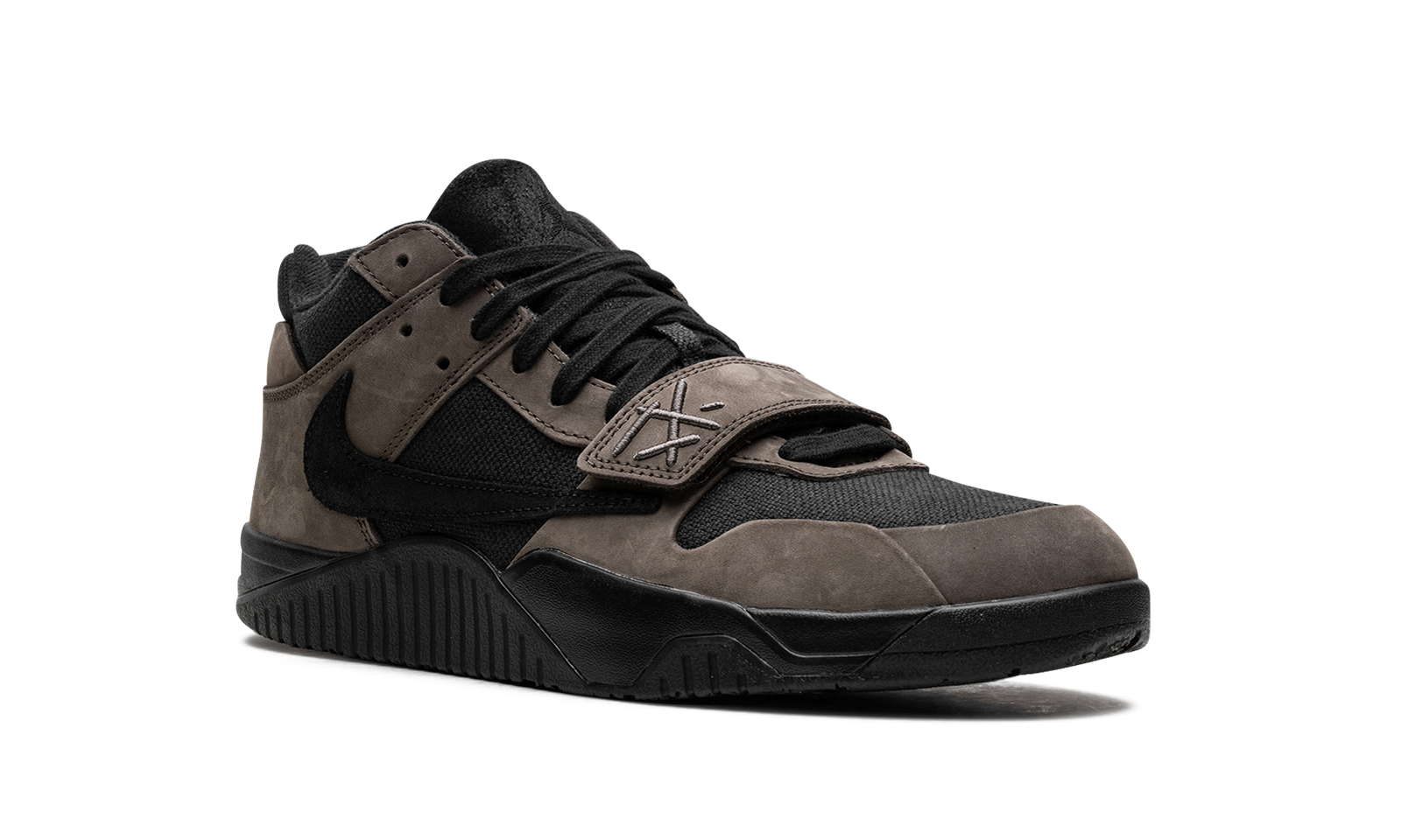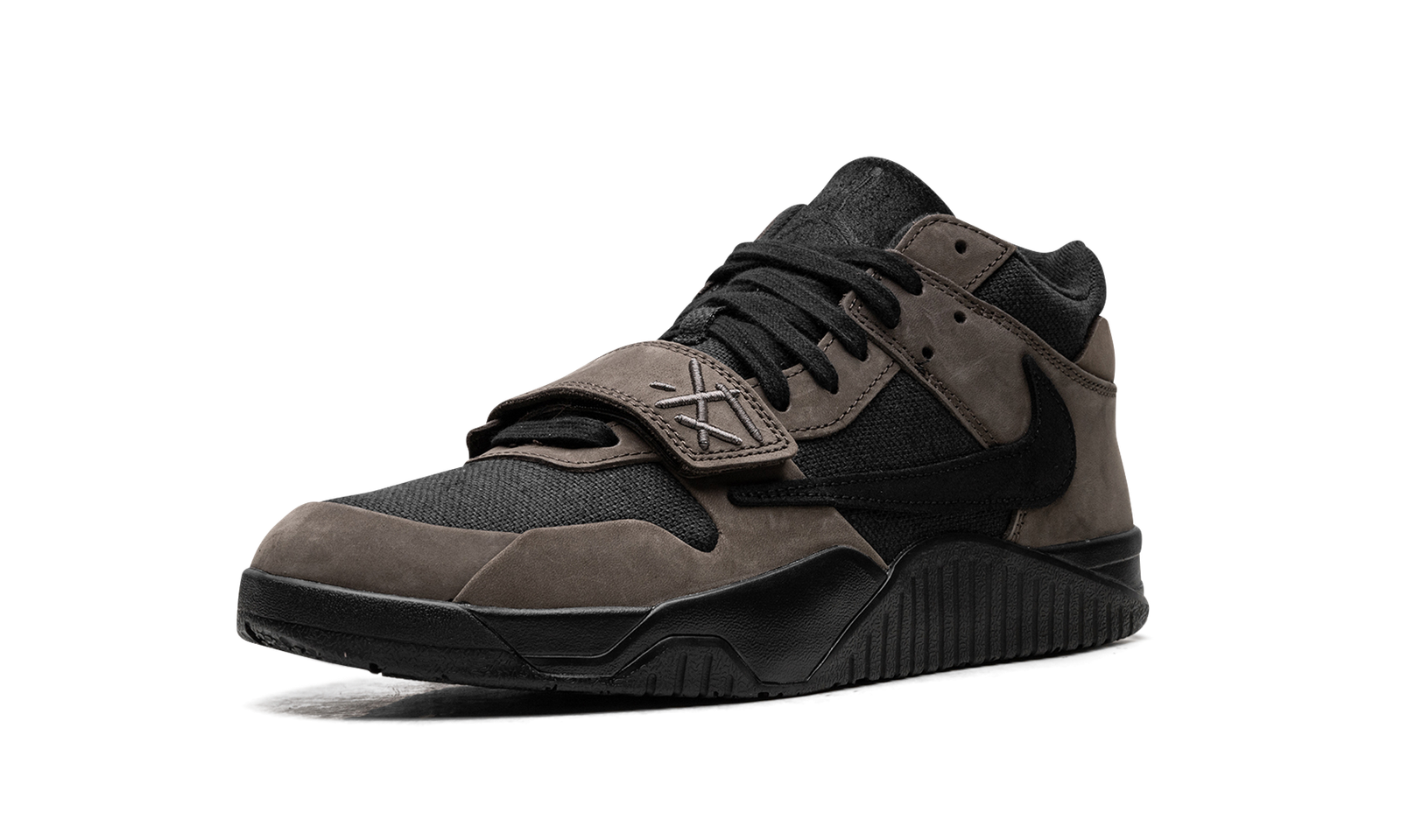 Step into Travis Scott’s style with the Jordan Jumpman Jack “Dark Mocha.” This design brings the hip-hop star’s signature aesthetic to footwear. Featuring details like a backwards Swoosh and smiley face logos, this unique sneaker combines a textile base with overlays. A standard Swoosh is on the medial side. Scott’s logo is on the heel.