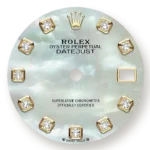 The light reflections on the case sides and lugs highlight the elegant profile of the 28 mm Oyster case, which is fitted with a diamond-set bezel. Rolex’s classic feminine watch, the Lady-Datejust is in the lineage of the Datejust, the emblematic model that has been a byword for style and accurate timekeeping.
