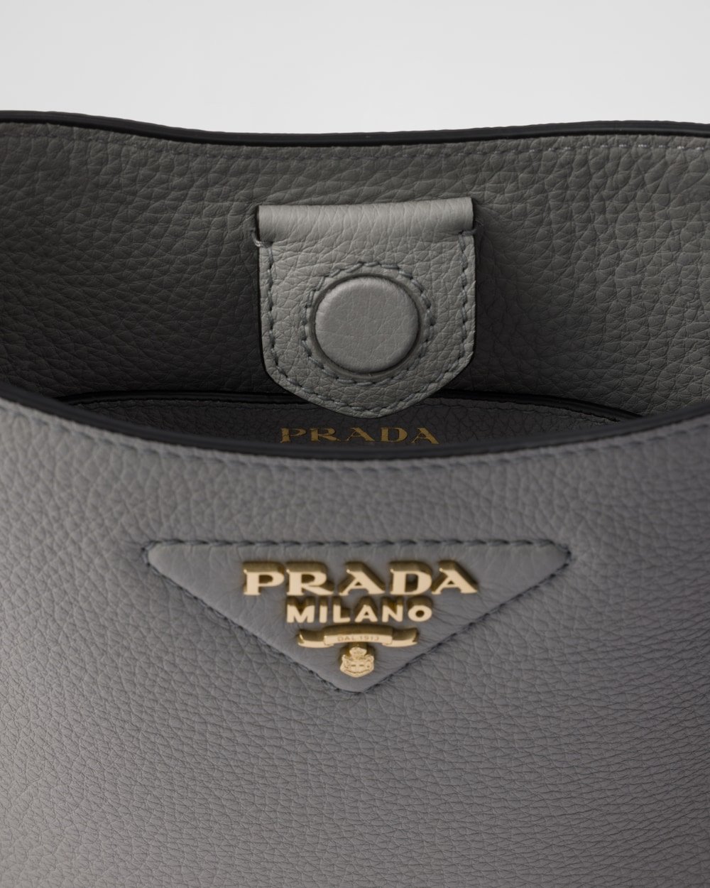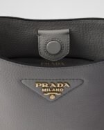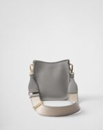 This versatile leather bag boasts a sleek and functional design. The shoulder strap adds a sporty element to the accessory, elevated by the metal logo lettering that stands out on the simple yet distinctive geometry of the iconic triangle.