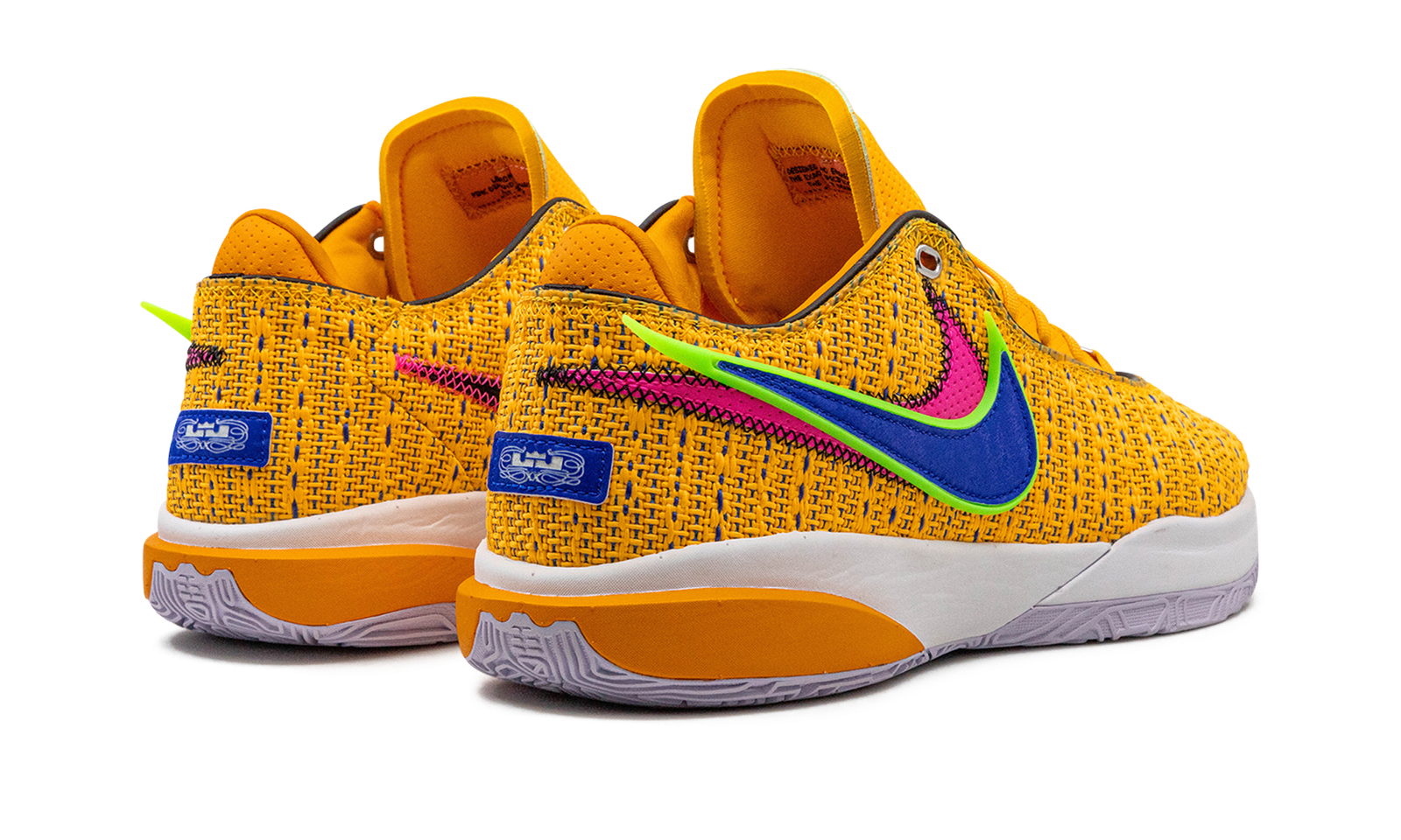 The Nike LeBron 20 “Laser Orange” is a colorway of LeBron James’s twentieth signature basketball shoe with a can’t-miss appearance. Dubbed the “Laser Orange,” this colorway of LeBron’s performance sneaker features a bright orange knitted construction with blue fibers woven into the fabric. A blue Swoosh with neon green trim is layered over a hot pink Swoosh on the lateral side of the shoe while a black Swoosh is seen on the medial side of the shoe. LeBron’s signature branding appears throughout the design. Underfoot, a Air Zoom Turbo cushioning unit is placed in the forefoot while a Zoom Air bag is encapsulated in the heel of the midsole. Both features ensure top-level performance on a basketball court. Release date: June 8, 2023