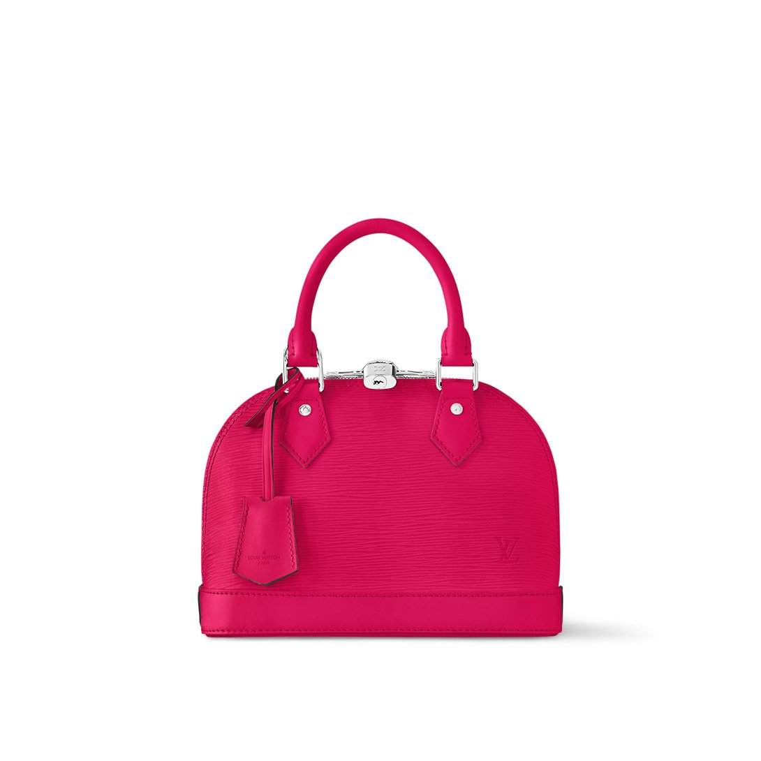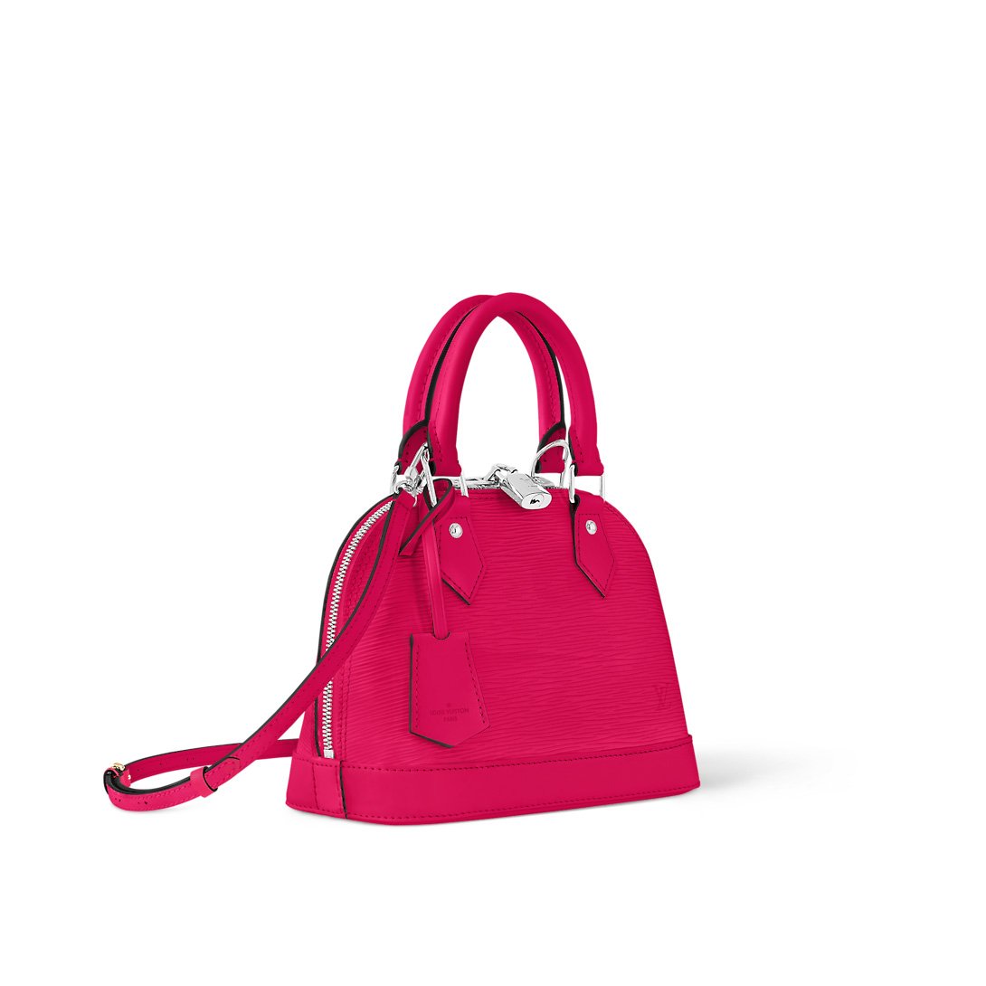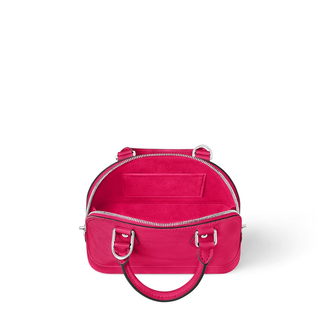 This Alma BB handbag is made from grained Epi leather with silver-color hardware. Classic House details such as the padlock and key bell elevate its Art Deco design. The microfiber-lined interior includes a flat pocket to keep things organized. The two top handles and removable and adjustable leather strap give carry options.