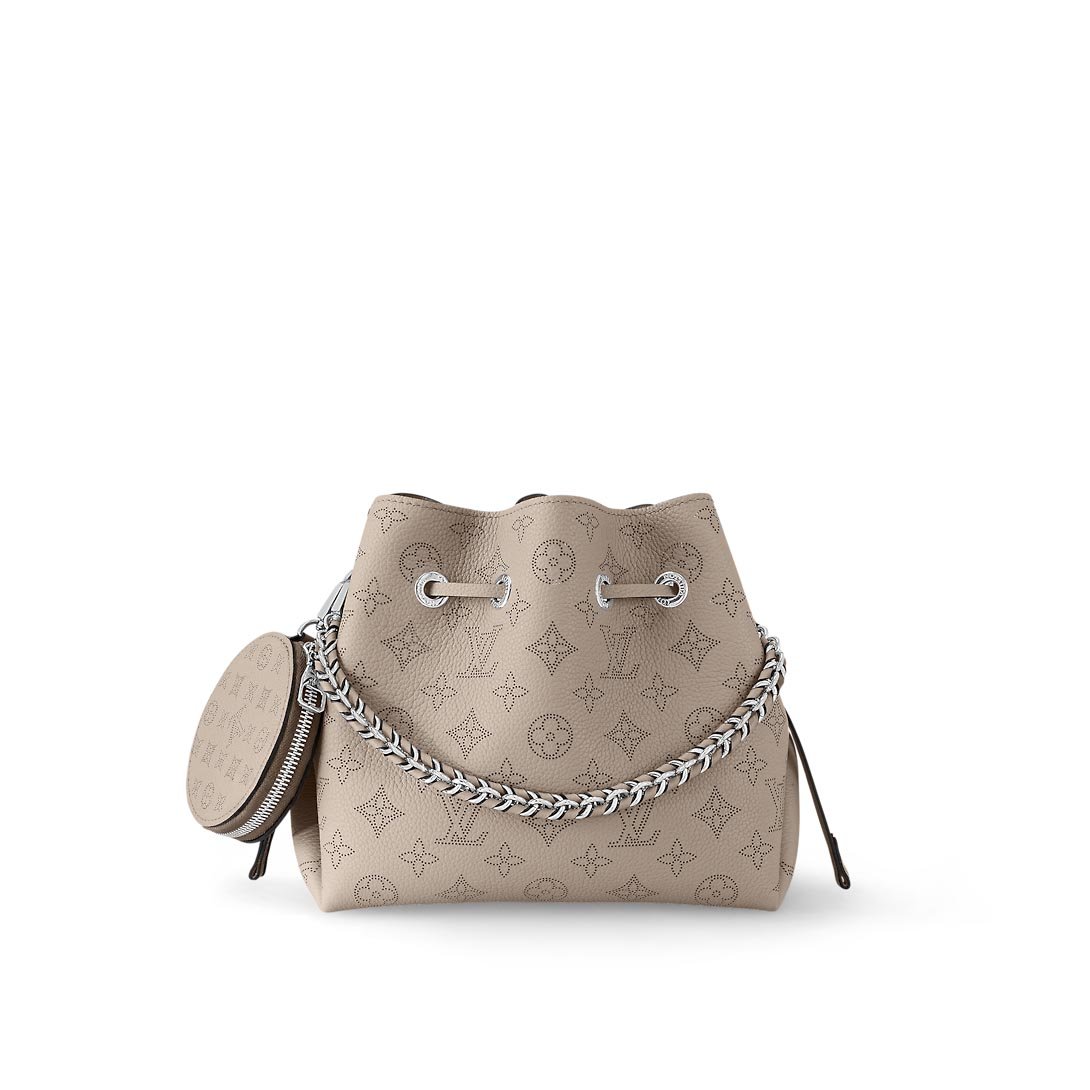 Louis Vuitton unveils the Bella bucket bag in Mahina calf leather with its perforated Monogram pattern. The bag’s small size and the attached round coin purse, featuring a miniature version of the perforated Monogram motif on one side, make it modern, desirable and trendy. The sophisticated leather and metal mixed handle associated with a removable leather strap bring versatility.