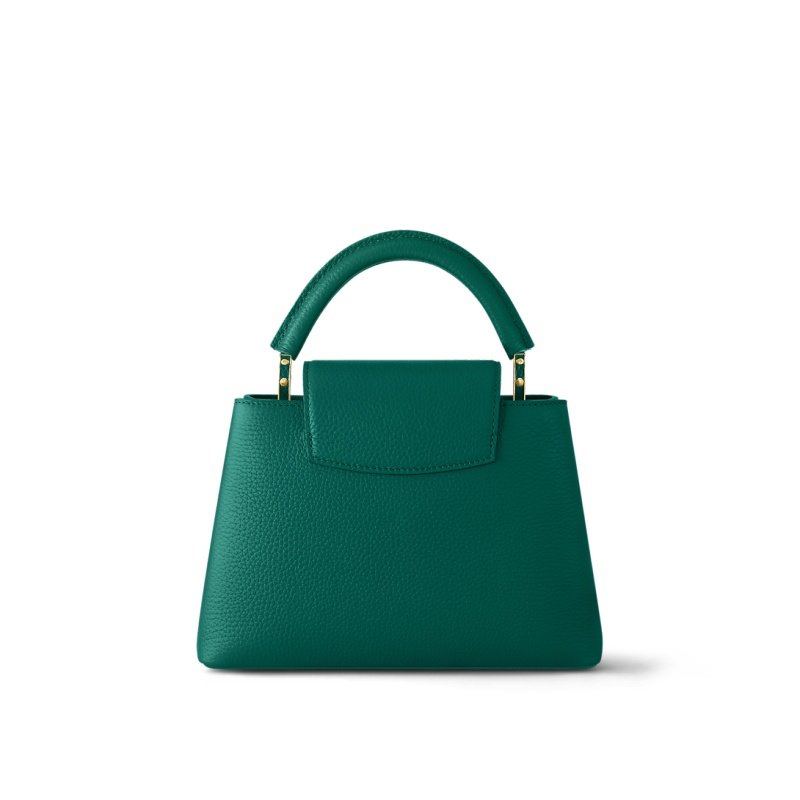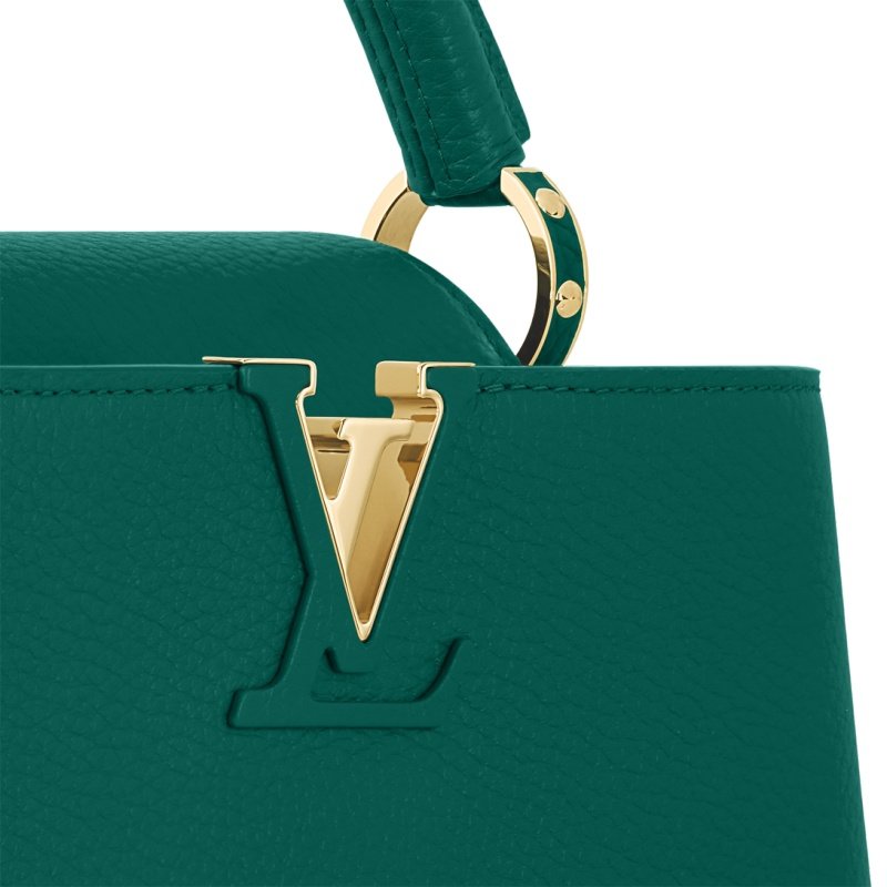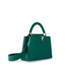 The Maison reinterprets the Capucines BB handbag this season in a glowing emerald hue, a colorway at once bold and feminine. Crafted from full-grain Taurillon leather and accented with finely fashioned gold-finish hardware, this compact model moves gracefully from day to evening. The bag’s wide, detachable strap is perfect for over-the-shoulder or cross-body wear.