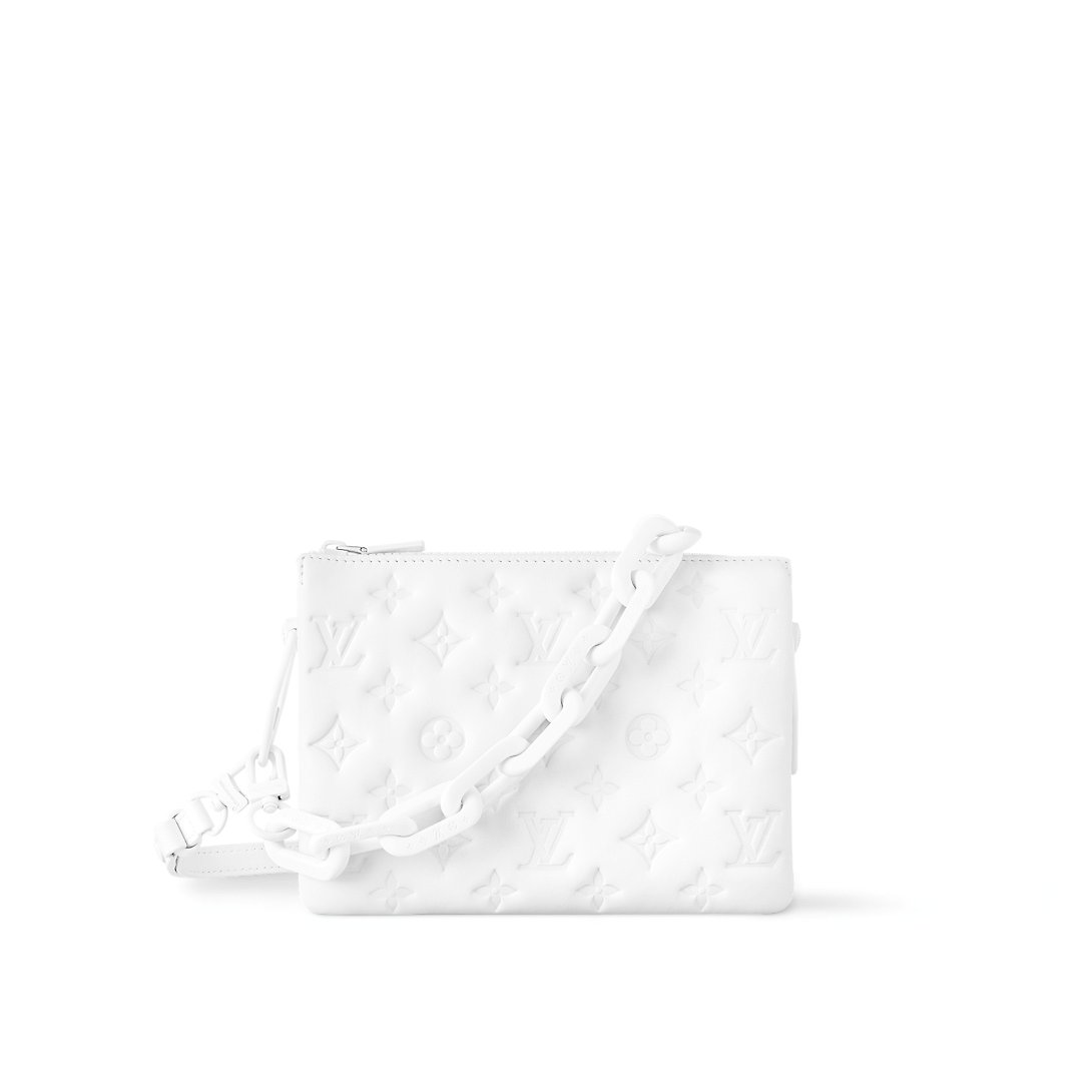 Crafted from matte lambskin with Monogram embossing, the Coussin BB is adorned with a tone-on-tone chunky chain for a monochromatic finish. It belongs to the Black Out collection, which explores a graphic approach to iconic silhouettes. This timeless style can be worn multiple ways, and opens to reveal a capacious interior for everyday essentials.