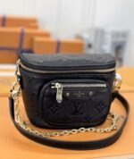 The Mini Bumbag is reinterpreted in supple, grained Monogram Empreinte leather, which is embossed with the Monogram pattern. This on-trend piece features a removable, adjustable strap and a removable, gold-tone chain for different looks and carry options. It has a zipped main compartment and a zipped front pocket with an embossed leather tag.