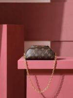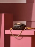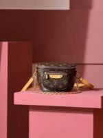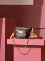 The Mini Bumbag in Monogram canvas is Louis Vuitton’s feminine interpretation of the on-trend bumbag format. Designed for versatility, it features a removable, adjustable strap in the House’s emblematic natural leather, as well as a removable gold-tone chain, which can be functional or decorative. The bag has a zipped main compartment and a zipped front pocket with an embossed leather tag.