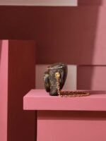 The trimmings are in natural cowhide leather, the skin is finished through a vegetal tanning process. Some natural marks or genuine irregularities in the leather may show through. Over time, this delicate leather, which is sensitive to scratches, will acquire a beautiful patina.
