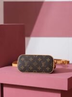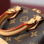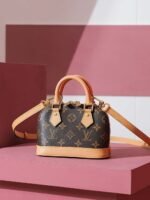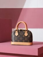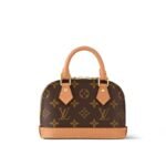 A miniature replica of the iconic Alma bag, the Nano Alma pairs Louis Vuitton’s signature Monogram canvas with natural leather trim. This exquisitely crafted piece combines heritage appeal with modern functionality: the double-zip closure reveals a surprisingly spacious interior, while the two leather handles and adjustable, removable shoulder strap offer multiple carry options.