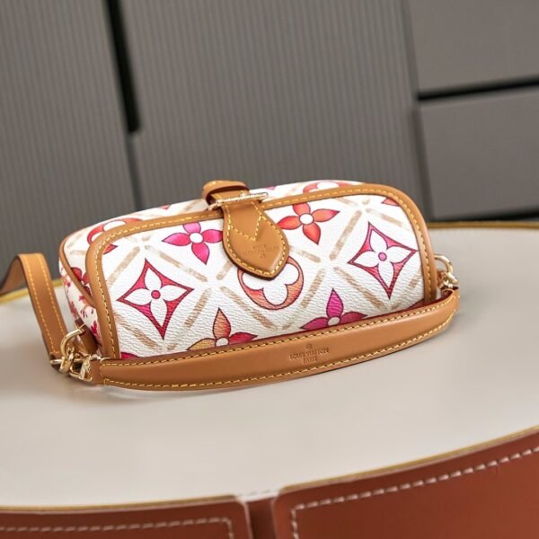 A miniature version of the Diane bag, the Nano Diane comes in Louis Vuitton’s iconic Monogram canvas. Ideal for essentials including a phone, this model is complemented by natural leather trim, which highlights its distinctive rounded flap and magnetic, belt-style closure. A removable handle and removable, adjustable shoulder strap offer different carry options.