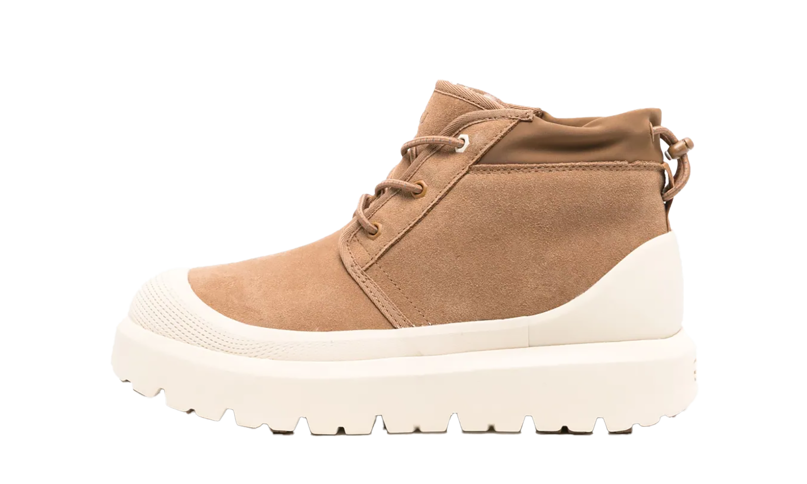 Experience rugged versatility with the UGG Neumel Weather Hybrid Boot “Chestnut Whitecap”, the durable Chukka Protector. This boot combines the iconic comfort of the Neumel chukka with robust, weather-ready features, including waterproof suede and seam-sealed construction. The cozy interior boasts a blend of UGGplush™ wool and soft lining for signature warmth. With a lightweight Treadlite by UGG™ outsole and a molded rubber toe for enhanced grip, this boot effortlessly handles light rain, snow, and everyday wear.