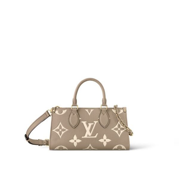 The Maison reinterprets the OnTheGo tote this season with a new east-west shape and a modern mix of Giant Monogram and Monogram Reverse canvas. Fitted with two Toron top handles and a wide, detachable strap, this beautifully proportioned bag can be styled in a variety of ways. A removable round coin purse completes this versatile design.