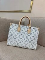 Part of the Nautical capsule, this OnTheGo MM is made from Monogram jacquard fabric, created with 66 different colored threads for a Monogram with a soft gradient of color. To ensure durability, the fabric is treated with an invisible protective coating. Each model comes with a laser-engraved mirror charm for on-the-go touch-ups.