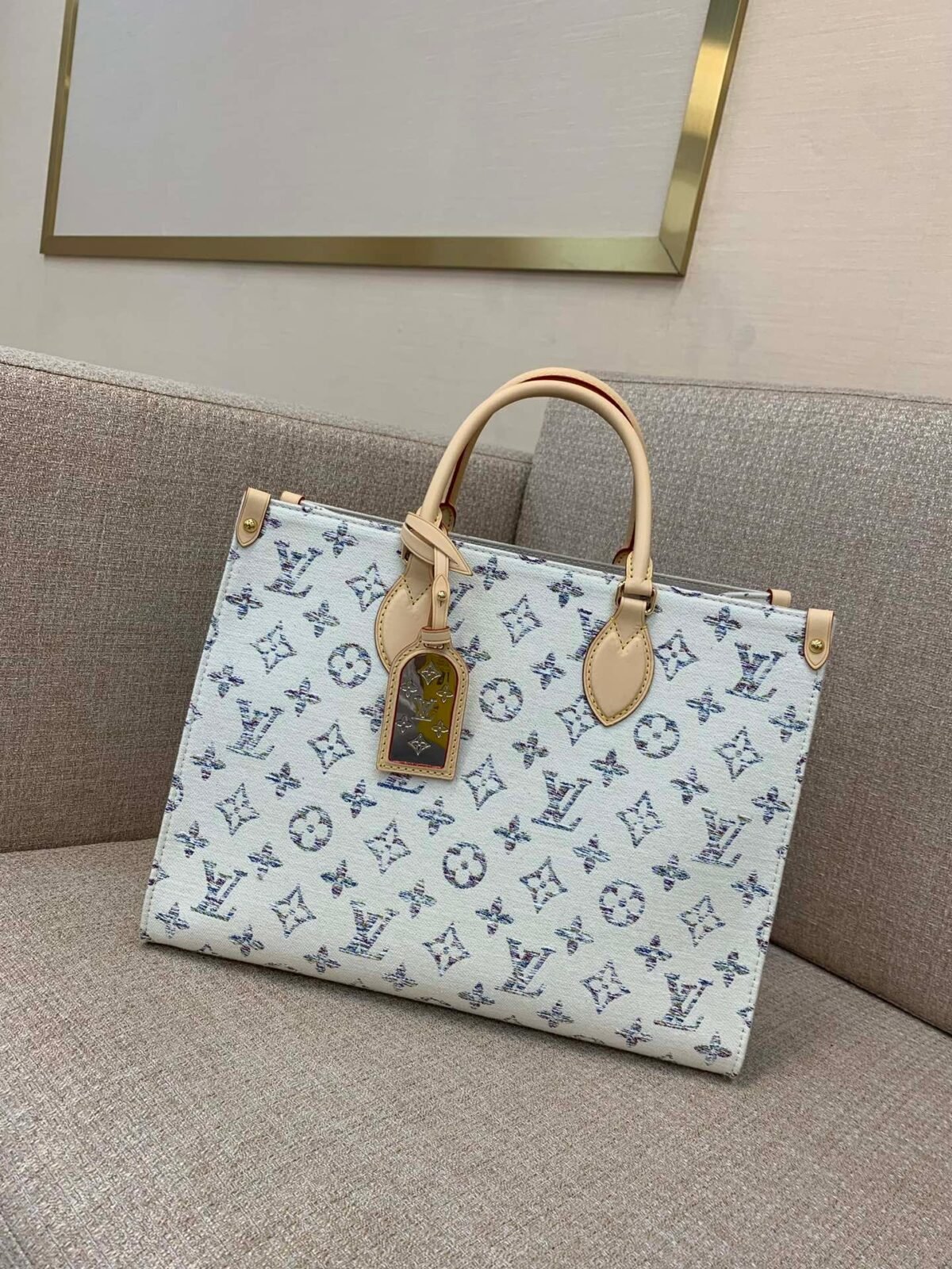 Part of the Nautical capsule, this OnTheGo MM is made from Monogram jacquard fabric, created with 66 different colored threads for a Monogram with a soft gradient of color. To ensure durability, the fabric is treated with an invisible protective coating. Each model comes with a laser-engraved mirror charm for on-the-go touch-ups.