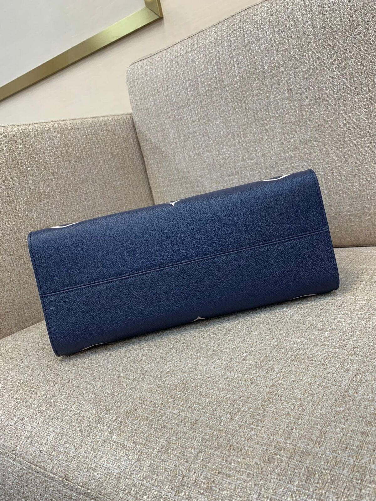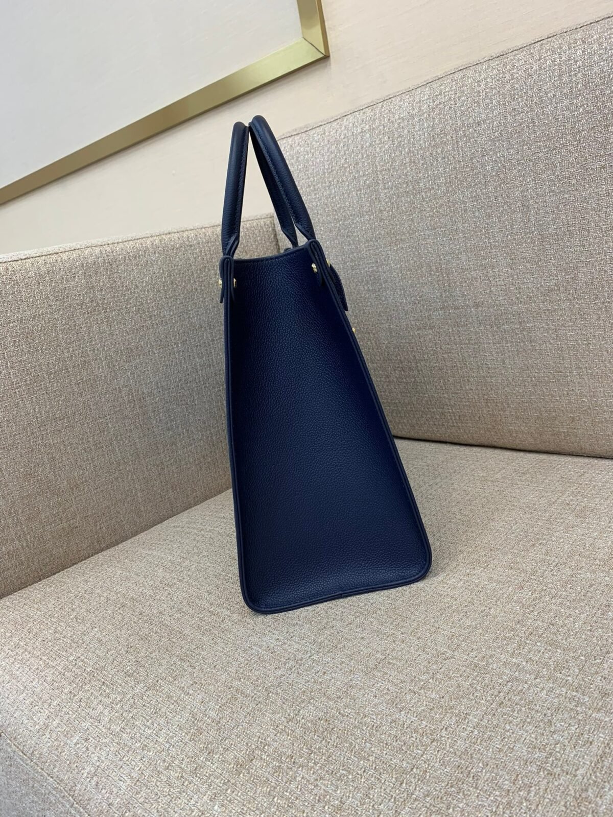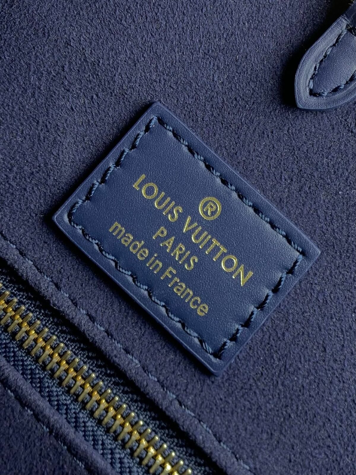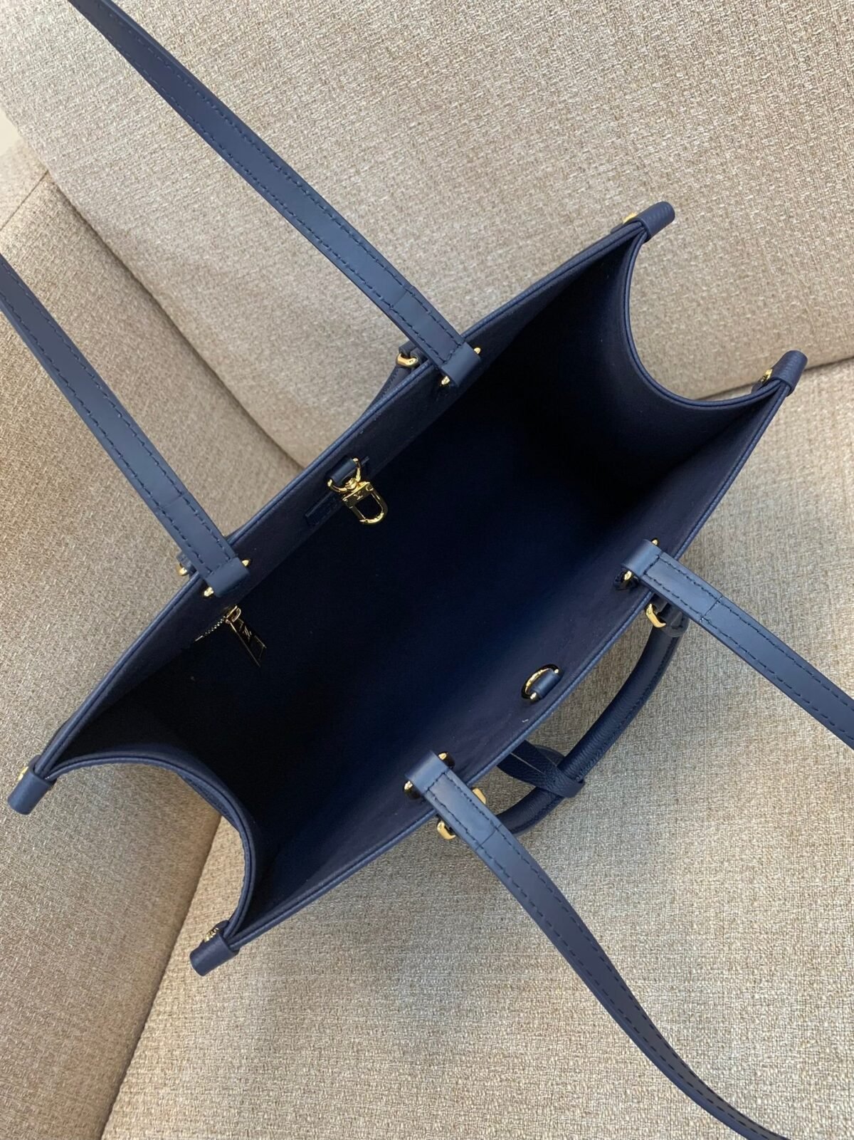Part of the Nautical Collection, the OnTheGo MM tote in Monogram Empreinte cowhide leather features the emblematic Monogram pattern, embossed and then printed onto the leather. Roomy enough for a 13-inch laptop, it features two sets of handles: two shorter handles for hand carry and two longer handles for shoulder wear.
