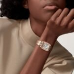 Case Shape Square Case Dimensions 29mm X 37mm including lugs Case Thickness 6mm Case Material 18kt Rose Gold Dial Color Silver Crystal Scratch Resistant Sapphire Bezel Fixed Screw-in Crown No Water Resistance 30m/100ft Case Back Solid Band Material 18kt Rose & White Gold Color/Finish Polished Clasp Hidden Folding Clasp Movement Quartz