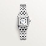 The Panthère de is the ultimate jeweled watch, resolutely modern in design with a sense of timeless glamour achieved through an angular form and understated size.