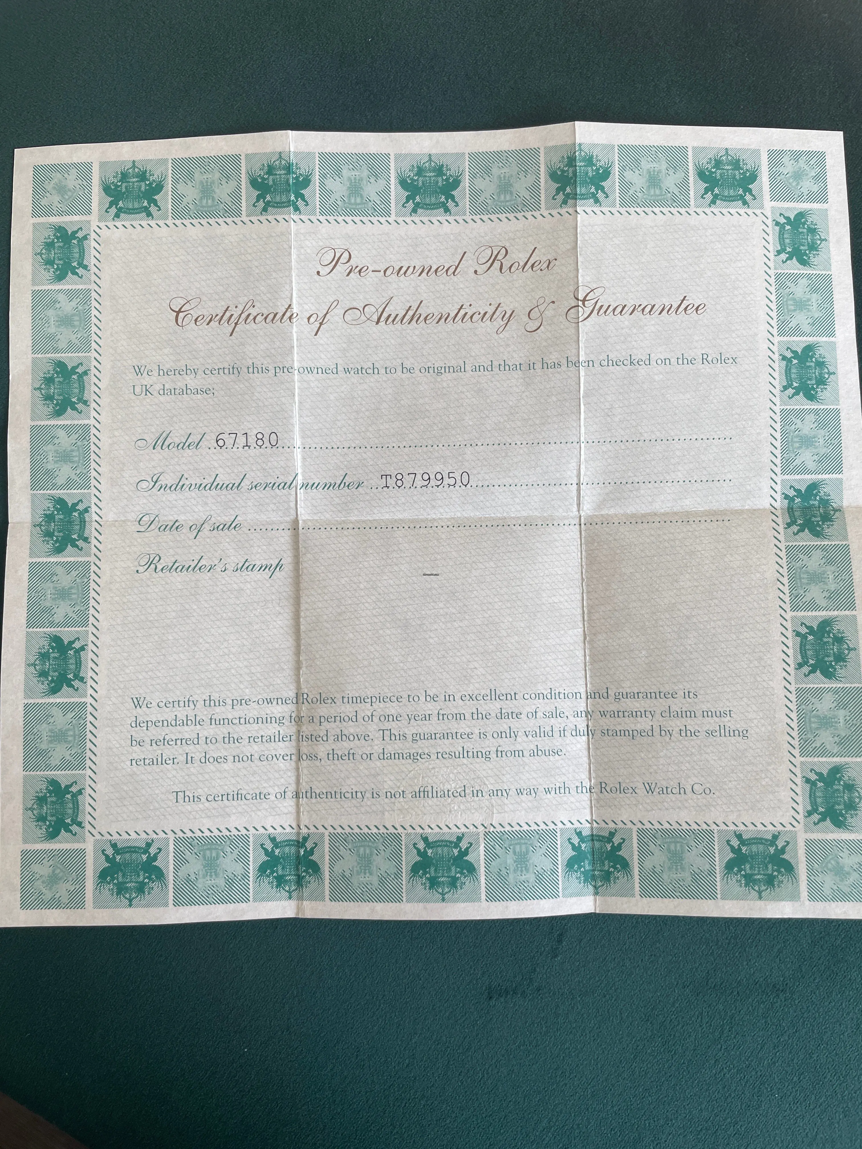 Rolex certificate of authenticity and guarantee