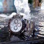 The chronograph function of the Daytona watch can be activated by pressing the button, and the button can be tightened like a winding crown when it is not needed to ensure that it is waterproof to a depth of 100 meters. The timepiece can be started, stopped or redesigned with a light press. The advanced technology makes the moment of pressing the button a crisp sound.