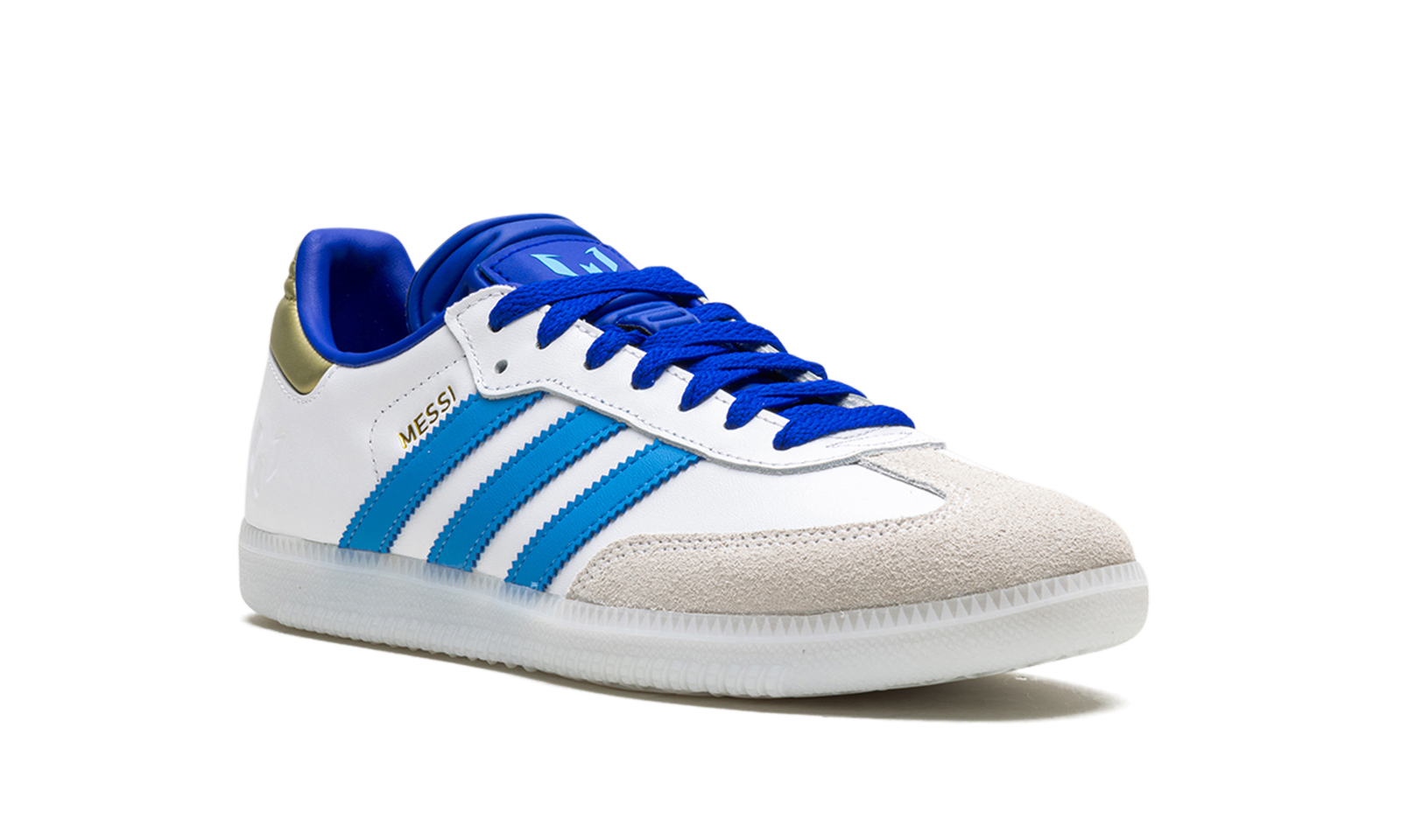 The Lionel Messi x adidas Samba Indoor “Argentina” is a collaboration between the soccer icon and adidas on the classic indoor soccer shoe. The adidas Samba “Argentina” is inspired by both the legendary soccer—or football, depending on where in the world you are—player and his home country. More specifically, the shoe is heavily inspired by the World Cup Trophy Messi won during the 2022 Qatar FIFA World Cup. The upper features a white leather base with two shades of blue inspired by Argentina’s kits (uniforms) in the aforementioned World Cup. Gold “Messi” branding appears on the lateral side by the blue Three Stripes and on the heel. An icy blue translucent rubber sole completes the look. Release date: February 20, 2024