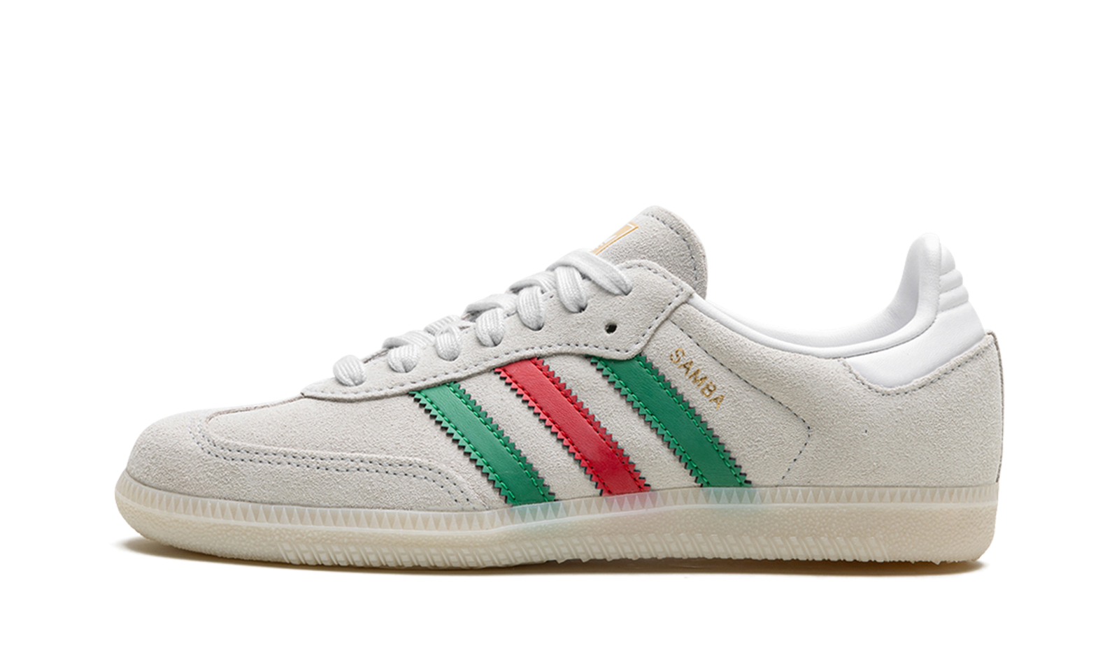 The adidas Samba OG “Italy” is a colorway of the ultra-popular shoe with colors inspired by the Italian flag. The Samba OG “Italy” features a Crystal White suede construction with green and red leather Three Stripes branding on the sides, said to be inspired by the colors found on the Italian flag. A small gold “Samba” logo appears on the lateral side of the mid-panel, while gold “adidas” detailing can be found on the tongue. Underfoot, a semi-translucent Crystal White rubber sole puts the finishing touches on the design.