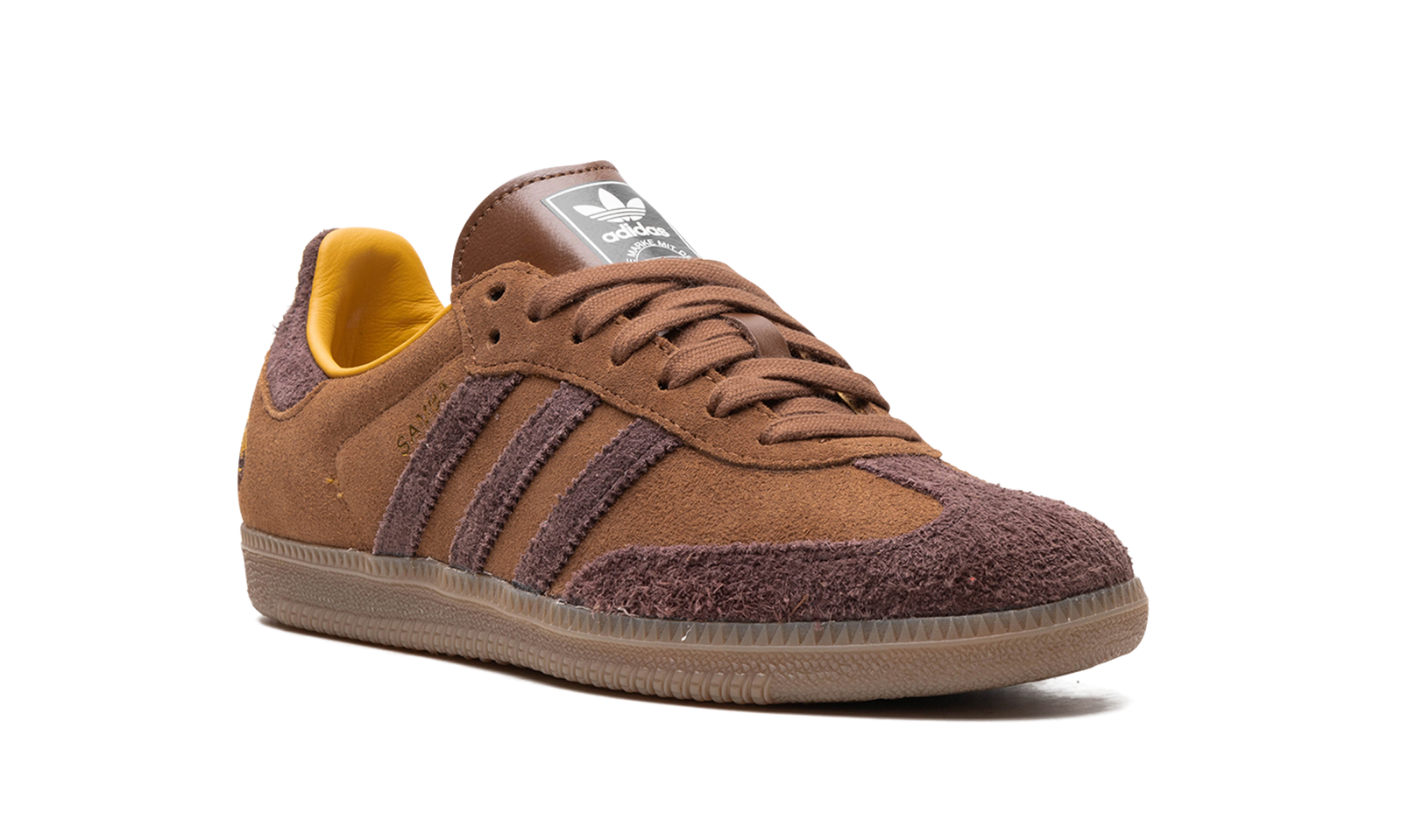 The adidas Samba OG “Talchum Pack – Preloved Brown” is a colorway of the classic shoe inspired by traditional Korean culture. The “Talchum Pack” celebrates Talchum, a Korean mask dance often performed during local festivals. A nod to the ritual appears in the form of an embroidered mask motif on the lateral side of the heel. As for the rest of the shoe, the upper features a Preloved Brown suede construction and hairy Shadow Brown suede on the overlays on the toe and heel, and on the Three Stripes branding on the sides. A Preloved Yellow leather inner lining gives the shoe a decidedly premium look and feel. Underfoot, a gum rubber sole completes the look. Release date: December 21, 2023