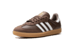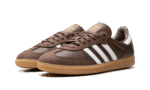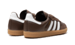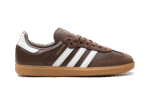 The adidas Samba OG Earth Strata Gum (W) elevates a classic with a rich, earthy palette. Smooth calf leather meets suede overlays, blending luxury with iconic design. Earth Strata dominates, coloring laces, tongue, and insole for a cohesive look. Footwear White serrated stripes and heel tab provide sharp contrast, while gold metallic accents add elegance. A gum rubber outsole ensures grip and heritage appeal. This sneaker, inspired by indoor soccer, delivers comfort and durability with a sleek, retro aesthetic. Ideal for those seeking standout style and timeless functionality.