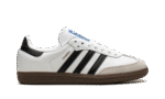 A clean, classic aesthetic defines the Adidas Samba OG “White.” This iconic silhouette, presented in an all-white colorway, offers a timeless and versatile option for your everyday look. Expect the signature 3-Stripes and low-profile design that provide a sporty yet stylish vibe.