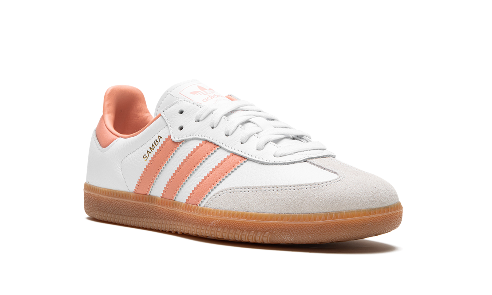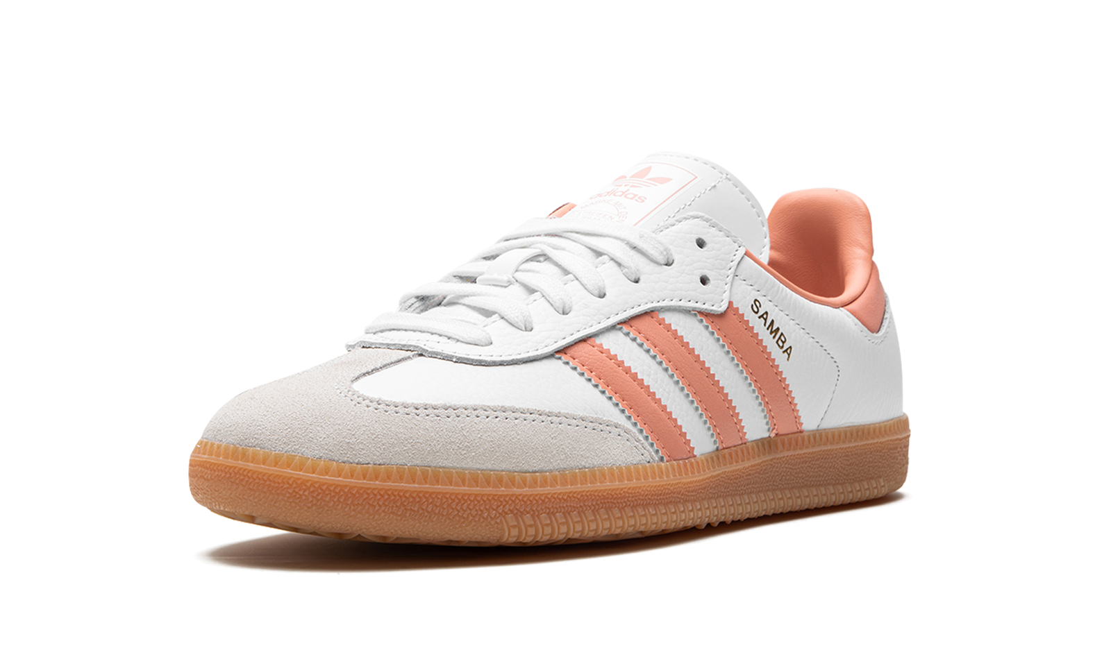 The Women’s adidas Samba OG “White/Wonder Clay” is a women’s-exclusive colorway of the popular shoe with a warm weather vibe. The “White/Wonder Clay” Samba OG is designed in a mostly two-tone color block with leather appearing on the upper and pink leather appearing on the leather Three Stripes, heel, and inner lining. A light grey suede overlay is found on the toe. Additional pink accenting is located on the “adidas” branding on the tongue. A gum rubber sole completes the look. Release date: May 30, 2023