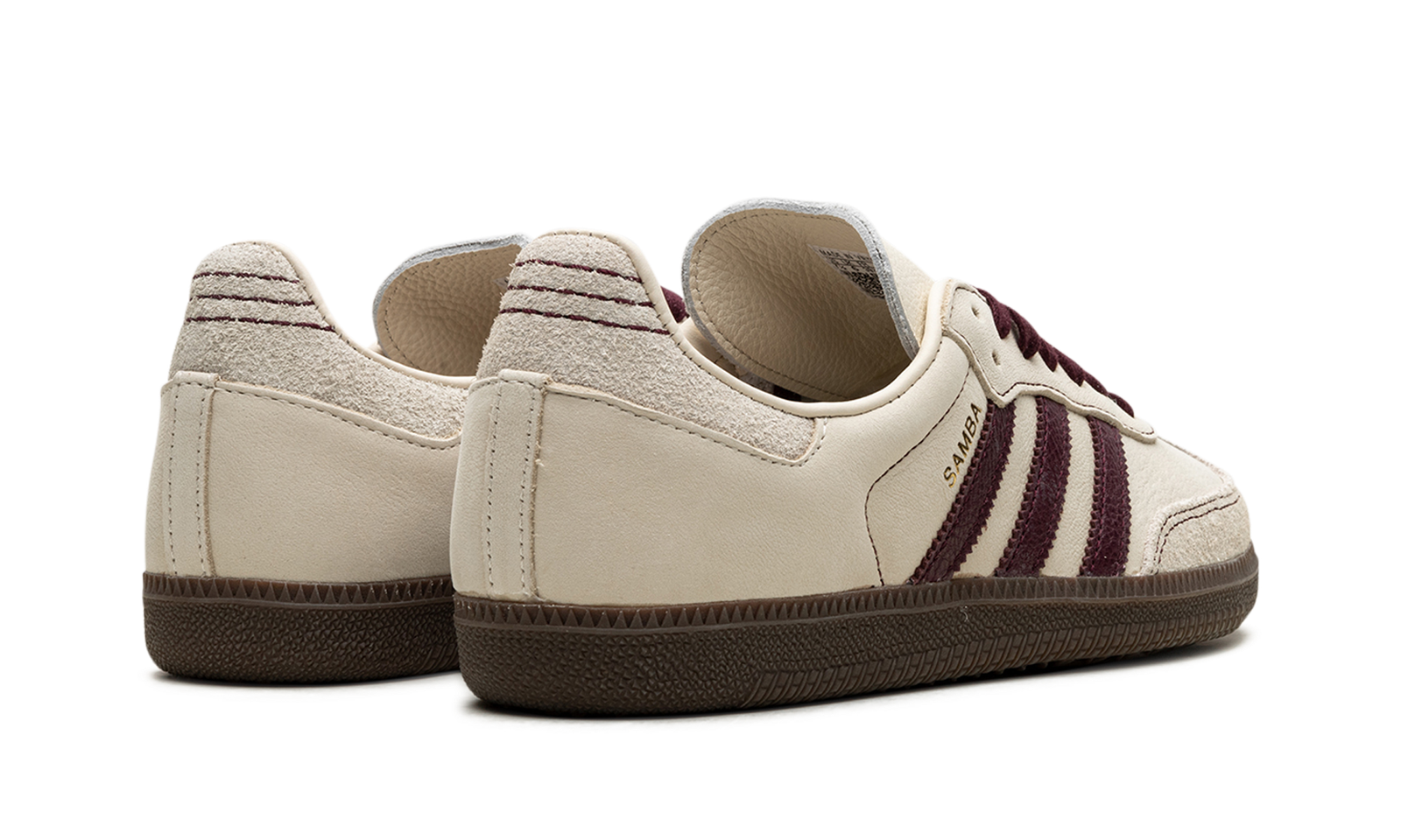 The Adidas Samba OG WMNS “Wonder White Maroon” brings a fresh yet timeless update to the iconic Samba silhouette, designed exclusively for women. With its clean Wonder White leather upper and bold Maroon accents, this version of the Samba offers a perfect blend of classic Adidas style and contemporary flair. Whether you’re sporting them for casual wear or elevating your street style, the “Wonder White Maroon” provides both versatility and a refined aesthetic.