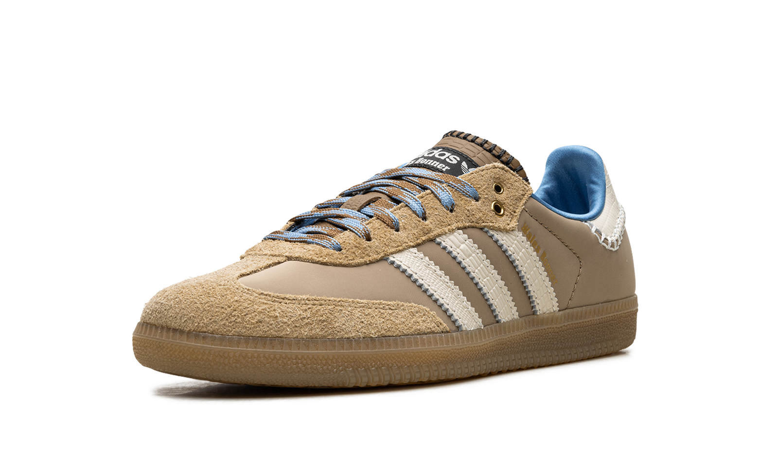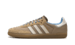 The Wales Bonner x adidas Samba “Desert/White” is a collaboration by the popular fashion designer on the casual sneaker with unique details. Wales Bonner is no stranger to the adidas Samba, having designed multiple colorways of the classic model throughout the years. On the “Desert/White” colorway, the shoe features a Desert, or tan, leather construction with tonal suede on the toe and eyelets. White textile Three Stripes branding appears on either side of the shoe, while gold “Wales Bonner” branding is stamped on the lateral side of the mid-panel. Additional White leather accenting can be found on the heel tab. Dual branding appears on the tongue. A Gum rubber sole completes the look.