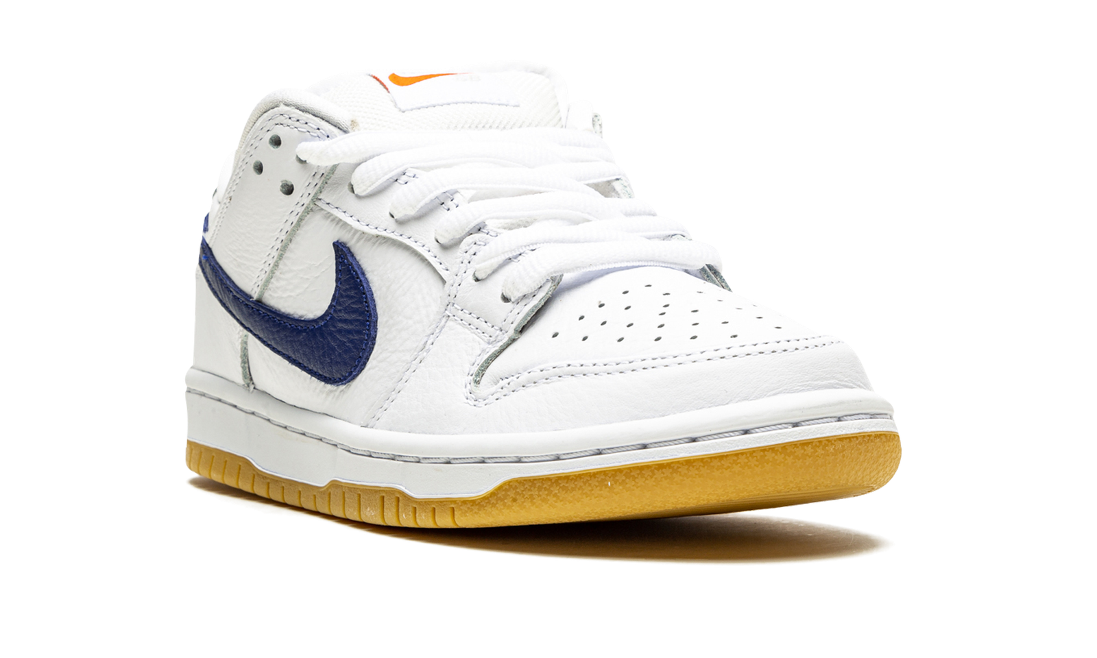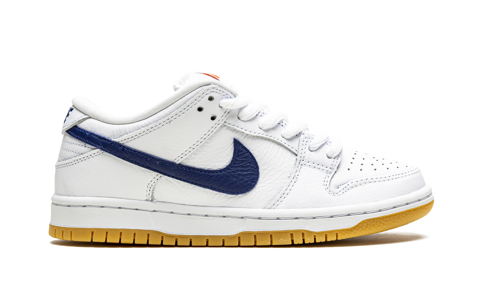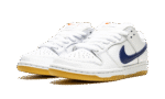 The Nike SB Dunk Low Orange Label “White/Navy” is an easy-wearing colorway of the low-top skate shoe by Nike SB that was released exclusively at skate shops. High in versatility and comfort whether cruising on a skateboard or walking in the streets, the “White/Navy” features a modest design that includes white leather on the perforated toe, mid-panel, collar, and heel. The overlays are also constructed in white leather, as well. A navy blue leather Swoosh logo appears on either side of the shoe and navy “Nike” branding is embroidered onto the heel. An orange Swoosh appears on the white nylon tongue tag with “Nike SB” insignia. A puffy white mesh tongue, tonal laces, and white inner lining complete the look of the top of the shoe. Underfoot, a white rubber midsole and gum-colored outsole put the finishing touches on the design. Release date: May 11, 2021