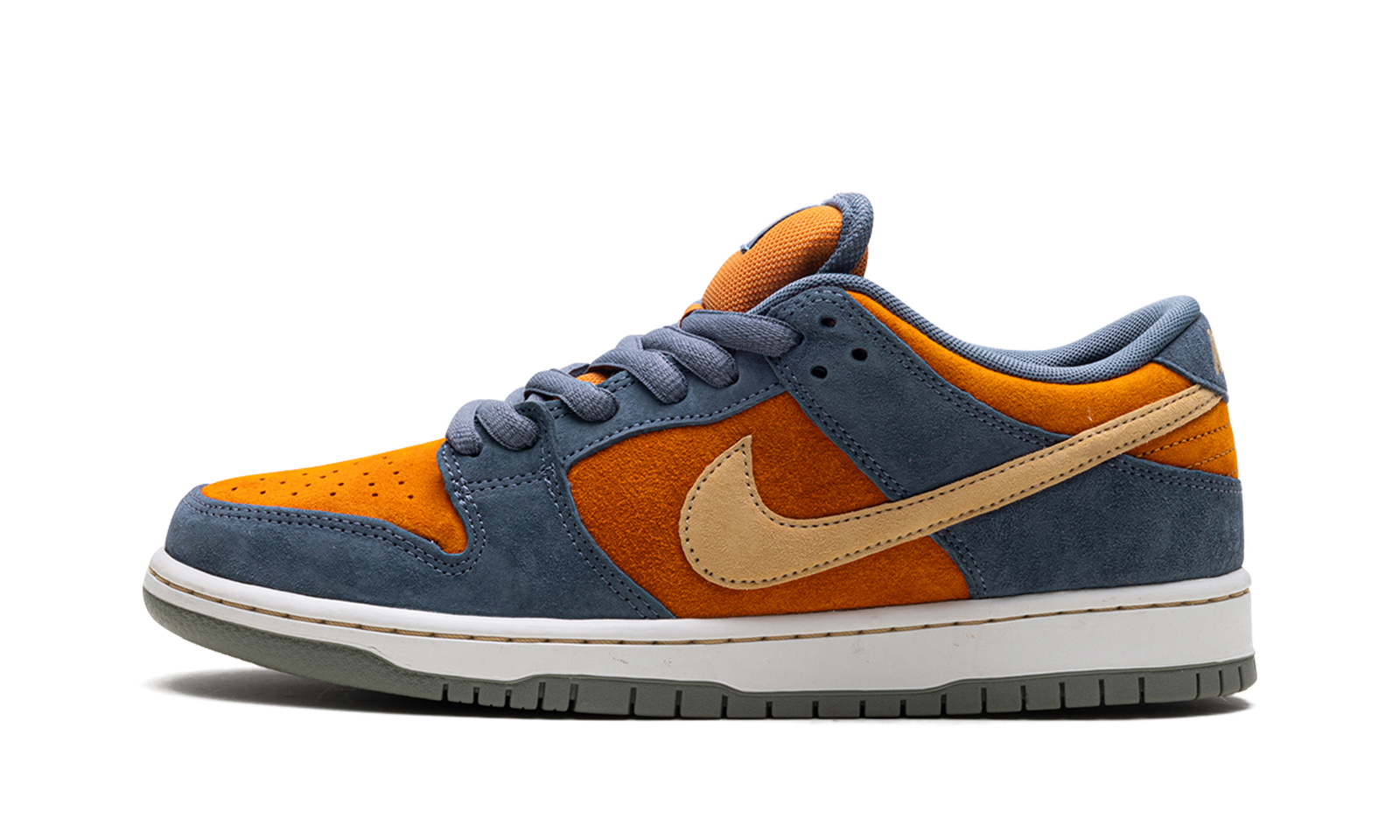 The Nike SB Dunk Low Light Carbon Monarch is a low-top sneaker featuring an all-suede fabrication. The upper features Light Carbon overlays on top of Monarch’s deep orange base, accented by the Swoosh in Sesame.