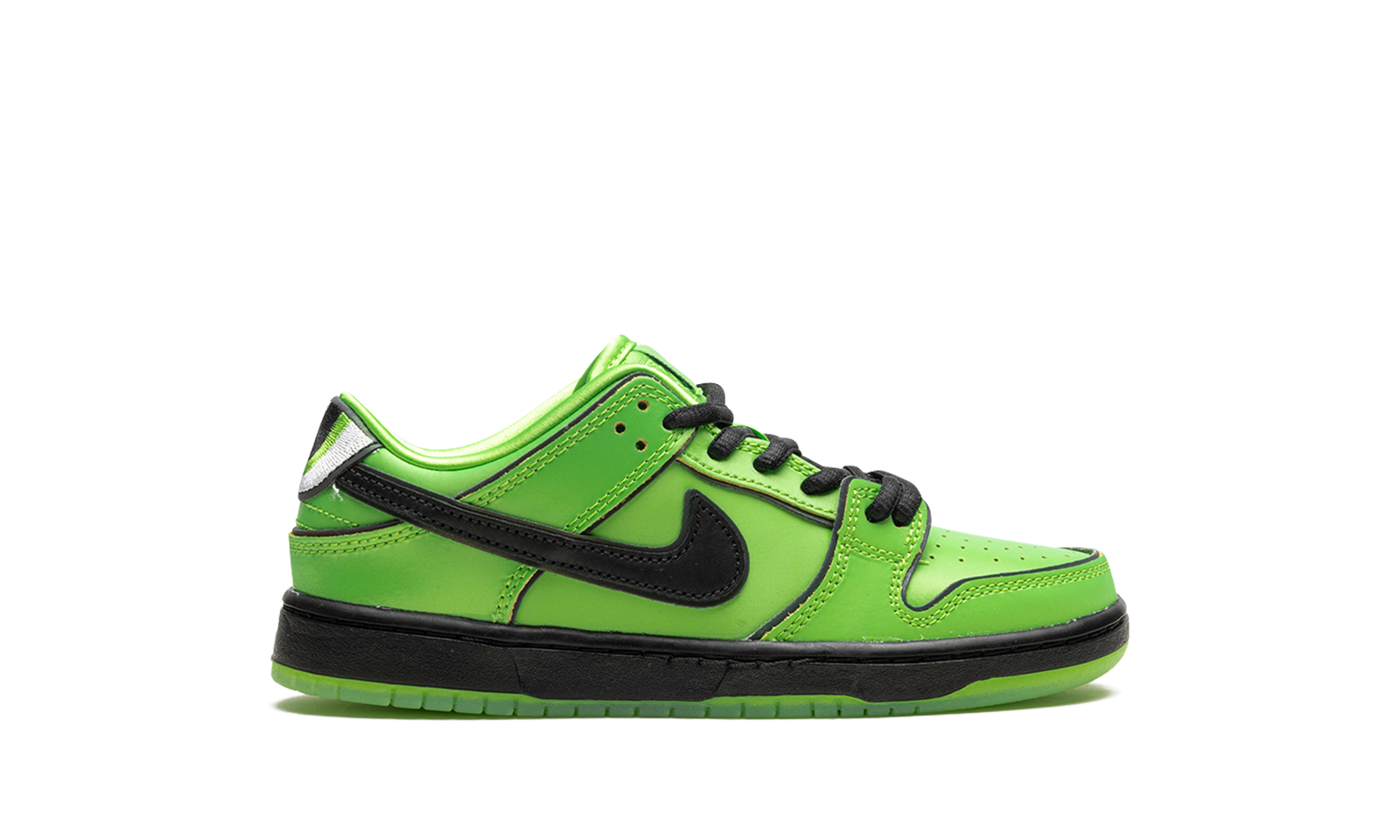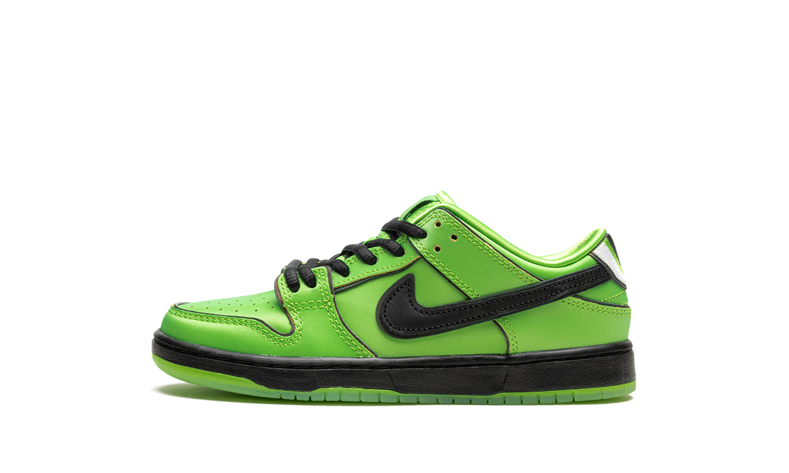 The Powerpuff Girls x Nike SB Dunk Low PS “Buttercup” is the preschool sizing of the collaboration by the animated cartoon series that shows love to one of the show’s main characters. Yet another unique collaboration by Nike SB for the Dunk, the “Buttercup” colorway honors the Powerpuff character of the same name with its green appearance in a shiny leather construction. Black accents are found throughout including for the side Swooshes and midsole. The character’s big eyes are embroidered on the back of each shoe’s heel tab. Powerpuff Girl detailing is also found on the insoles and beneath the clear rubber outsoles. Release date: December 14, 2023