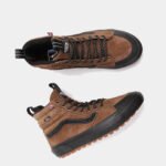 Vans MTE is the byproduct of a lifetime spent outdoors, because we know that the pursuit of your passions isn’t always accompanied by a fair-weather forecast. Rain, sleet, snow, mud, wind—nothing is going to stand between you and your next adventure. In fact, we like to think these all add a bit of flavor to the experience. It’s why we created MTE in the first place. Made for adventure and advanced levels of day-to-day versatility, the all-new Sk8-Hi MTE-2 packs over 25 years of Vans snowboard boot history and technology into a timeless, trusted style. The MTE-2 feature set includes the new MTE-2 outsole built with All-Trac™, an exclusive all-weather rubber compound that offers significantly improved traction and flexibility for all types of weather. The HydroGuard™ 360o waterproof membrane is in place to keep you dry, a PrimaLoft® zonal insulation package for cold weather thermoregulation will keep you warm, and the molded UltraCush™ sockliner with an OrthoLite® topsheet has been designed to keep you comfortable. Plus, the durable water repellent-treated leather and textile uppers bring an iconic Vans aesthetic to this uncompromising cold weather comfort. Whether you find yourself bagging snowcapped peaks or braving a rain-soaked commute, you can set off with confidence knowing every stitch of your equipment is intentionally placed to provide ultimate versatility. After all, we know it was never about the destination. It’s about the stories you create along your journey.
