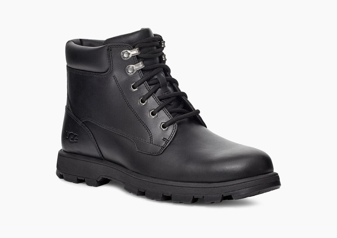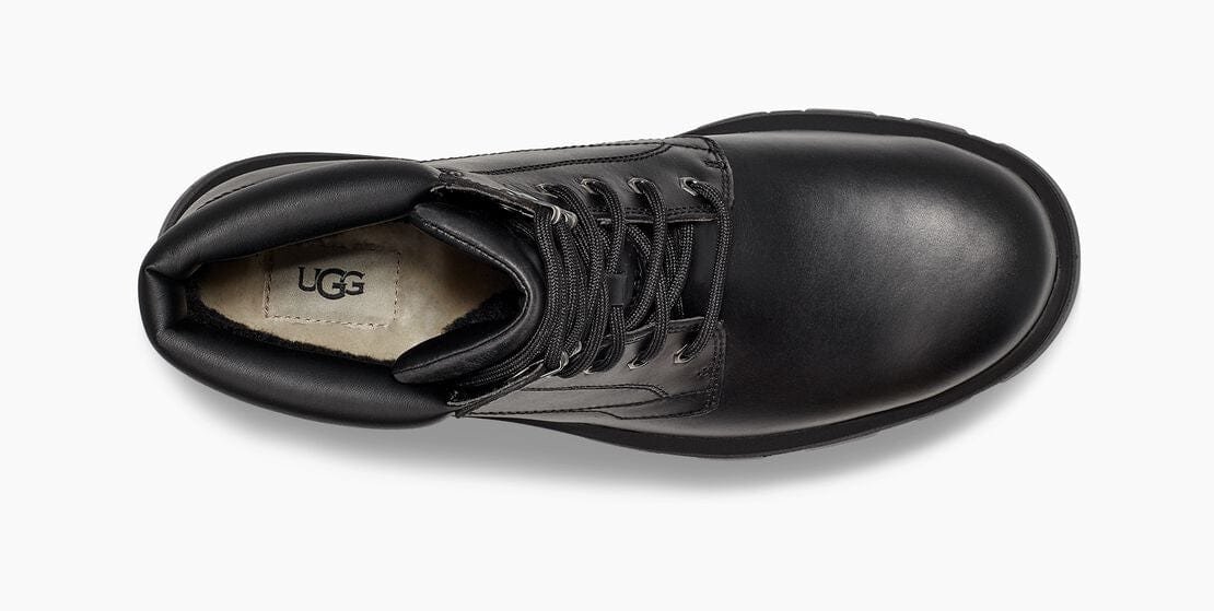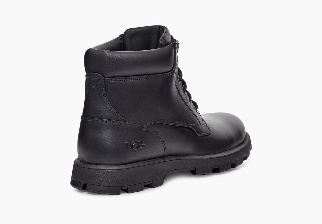 Reworking a timeless workboot silhouette, the Stenton is a rugged style made with seam-sealed waterproof leather for enhanced protection from the elements. Featuring functional metal hardware, comfortable collar padding, and a medial zipper for ease of entry, it’s finished with our soft UGGplush wool blend and an ultra-durable Vibram® outsole for superior traction. Pair with jeans and a flannel, slacks and a military jacket, or any other look you can imagine the possibilities are endless.