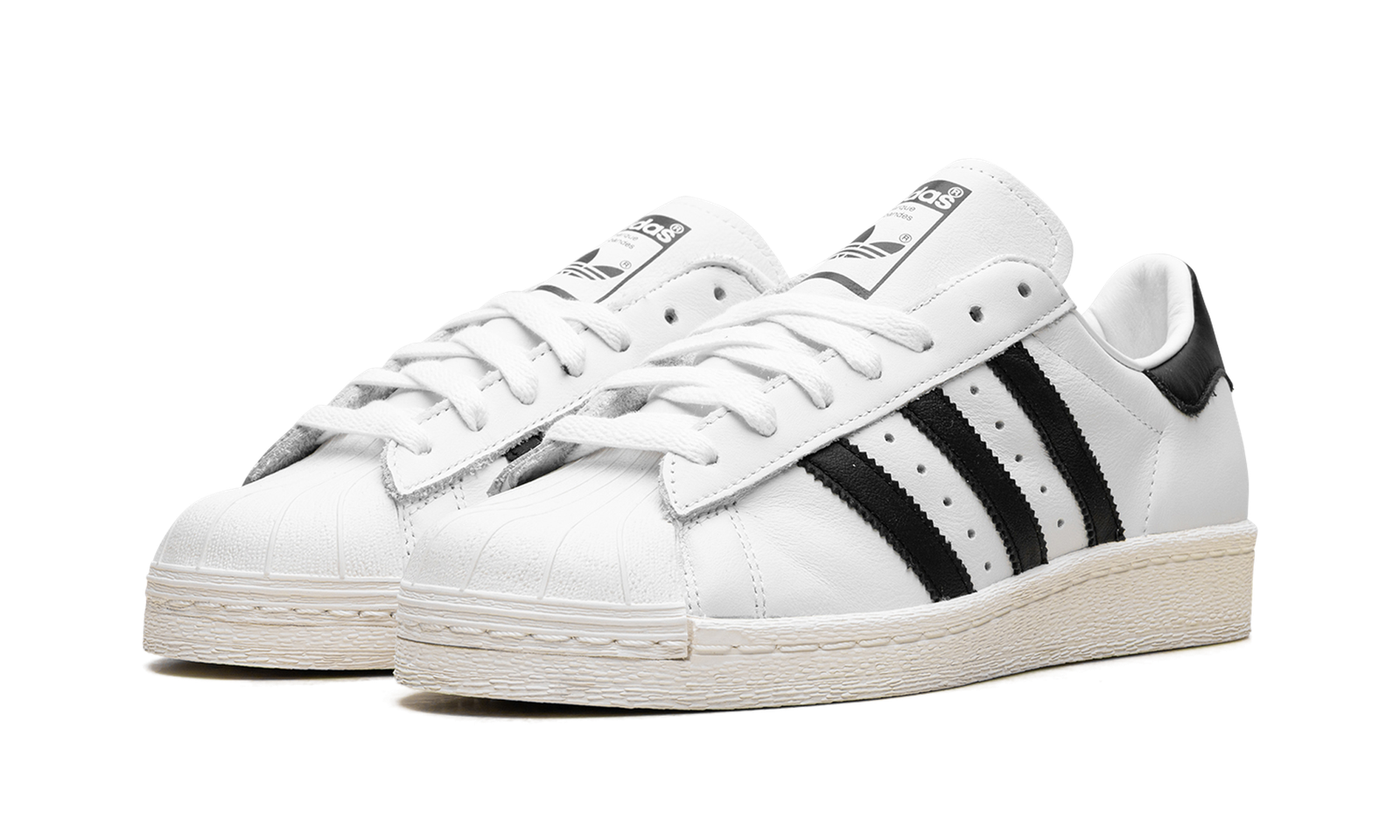 The Superstar 82 ‘White’ shoe features a classic design with a clean white aesthetic, offering a versatile and timeless addition to any sneaker collection.