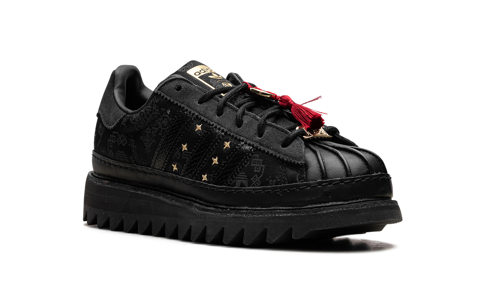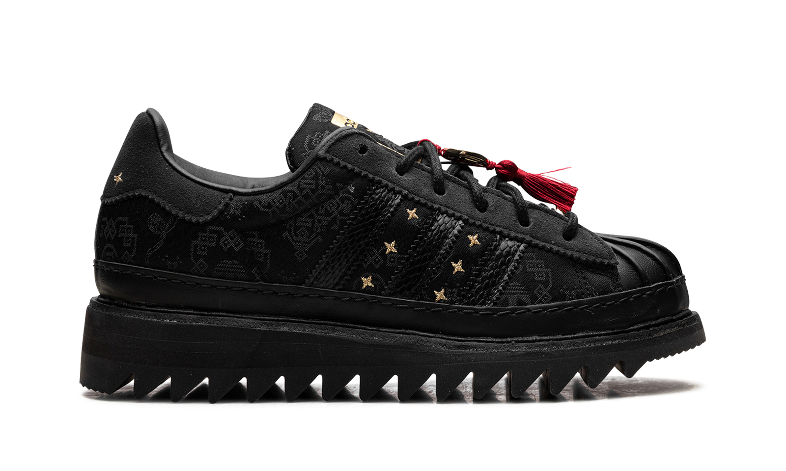 The Superstar ‘CLOT – Chinese New Year’ shoe features a classic design with festive elements, celebrating the Lunar New Year with unique details inspired by the occasion.