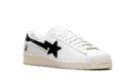 The Superstar Vintage ‘A Bathing Ape – White Black’ shoe features a classic design with a vintage aesthetic, infused with the iconic A Bathing Ape style in a white and black colorway, offering a unique and timeless addition to any sneaker collection.