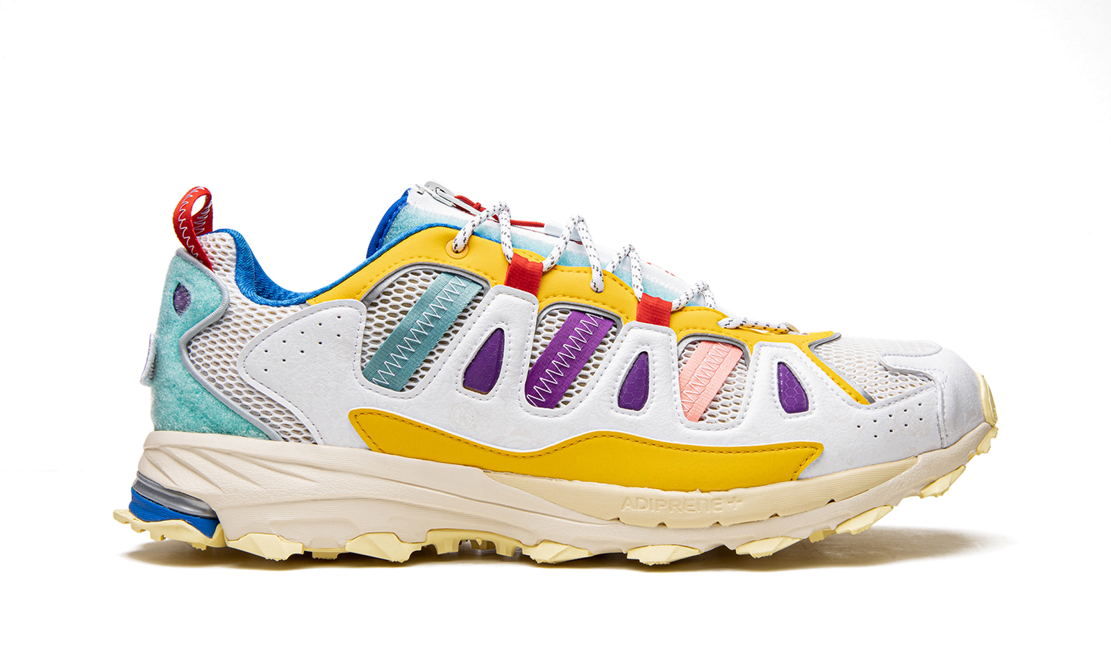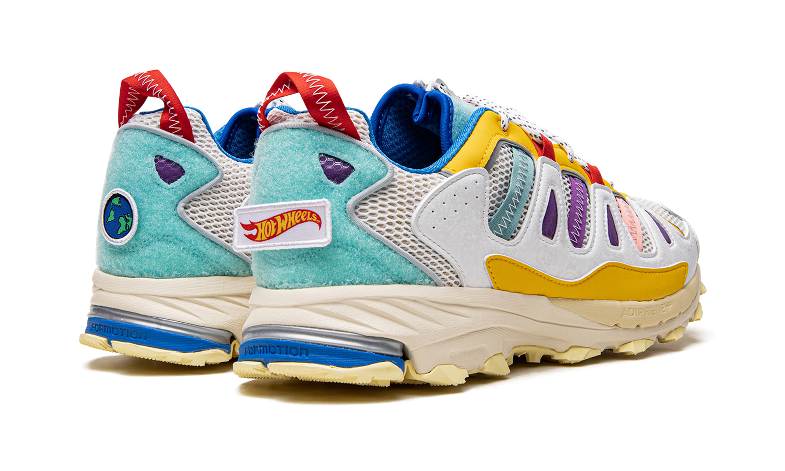 The Sean Wotherspoon x Hot Wheels x adidas Superturf Adventure is a fun collaboration that brings together the footwear designer and vintage curator, the toy manufacturer, and adidas on an eye-catching colorway of the lifestyle shoe. Wotherspoon and adidas’s Superturf Adventure gets a creative boost from none other than Mattel’s Hot Wheels, the toy car manufacturer, and it doesn’t disappoint. The upper features a white mesh base with tonal leather overlays. Colorful nylon straps are found on either side of the shoe. A yellow eyelet panel and teal overlay on the heel add to the look. Hot Wheel’s signature slogan, “It Ain’t the Same Without the Flame” appears on the tongue. Velcro patches in the form of a globe on the heel of the left shoe and a “Hot Wheels” logo on the heel of the right shoe complete the look. This shoe is made from recycled and vegan content. Release date: August 25, 2022