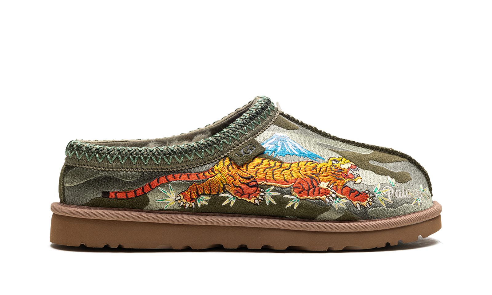 Step into exclusive streetwear comfort with the Tasman Slipper Palace “Burnt Olive Camo”. This celebrated collaboration features a classic UGG slipper updated with a Palace camo pattern on the burnt olive suede. The plush wool lining and durable outsole deliver ultimate warmth and a bold aesthetic, perfect for making a statement indoors or out.