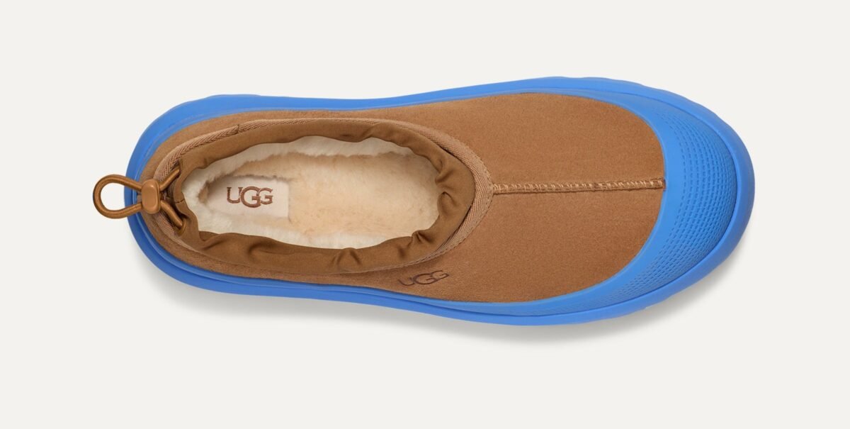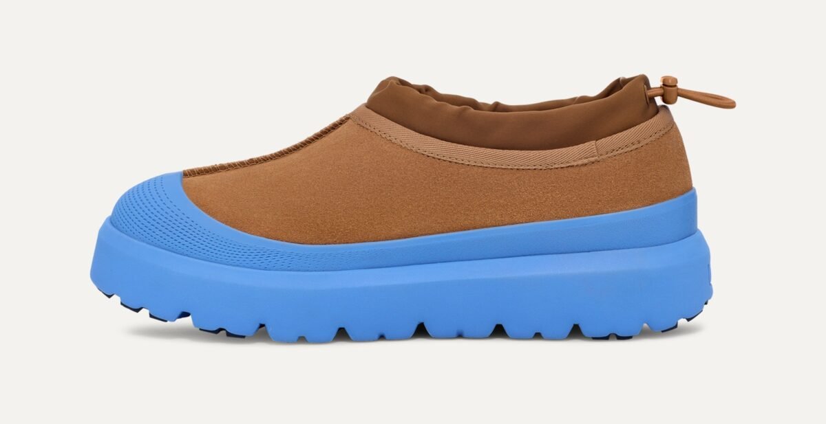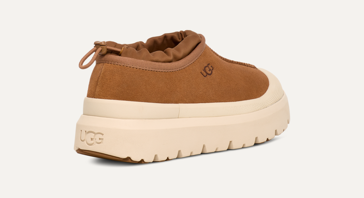 Who (and we can’t stress this enough) wants to take a walk in the drizzle with us? We can always count on the Tasman Weather Hybrid to travel with us outdoors, even if its a little wet out there. Featuring waterproof suede and seam-sealed construction as well as our cozy UGGplush™ upcycled wool lining, the Tasman Weather Hybrid offers a light, slipper feel with an easy slip-on silhouette. The outsole is made from renewable, rainwater-nourished sugarcane and features a permanent galosh for wet conditions.