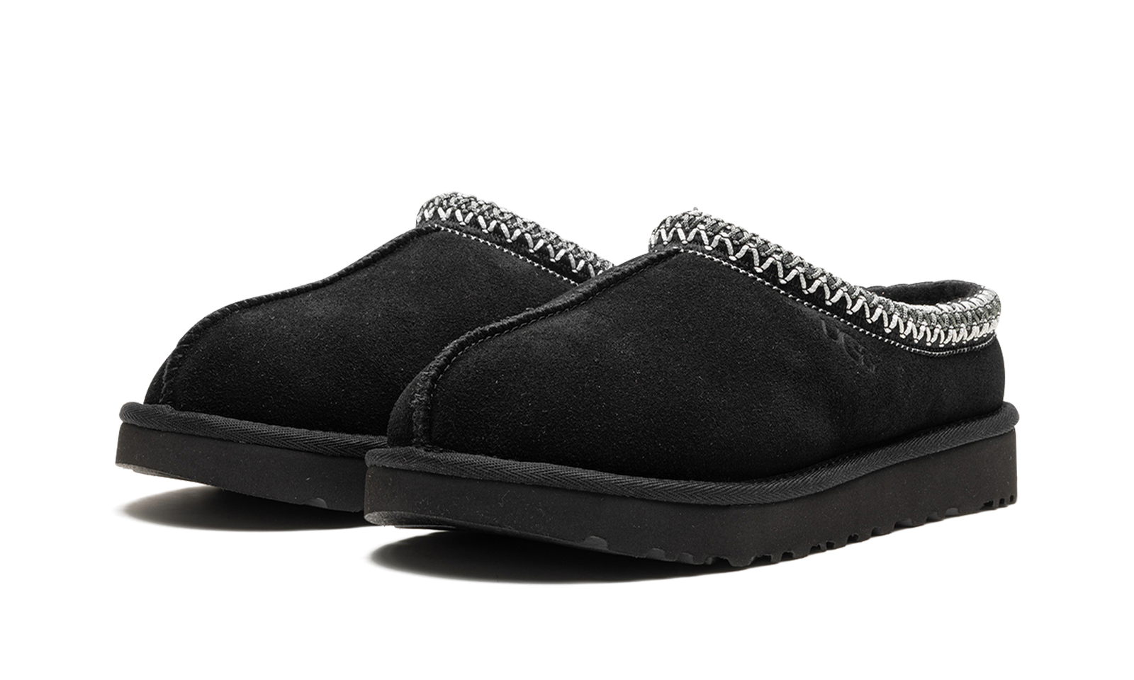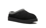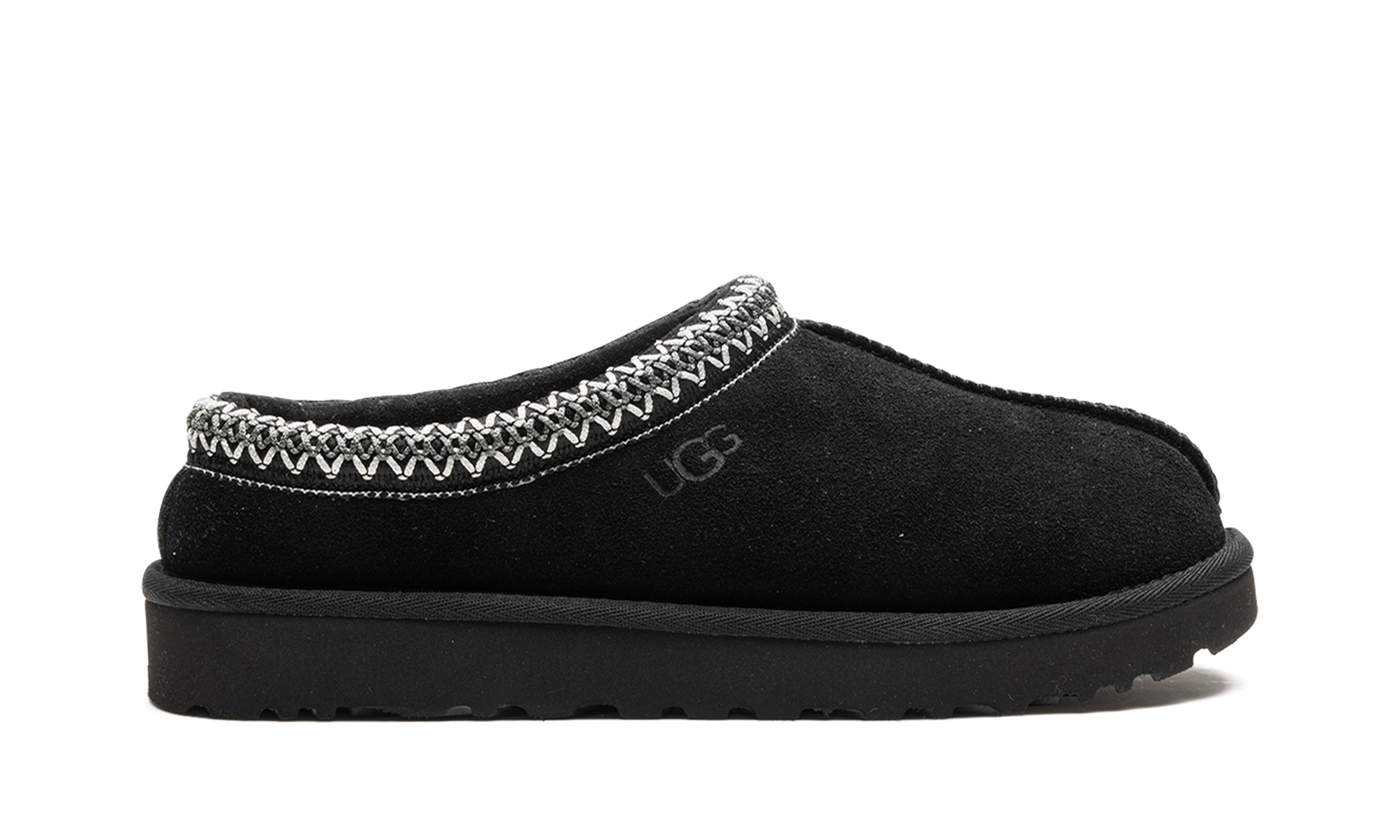 The Women’s UGG Tasman “Black” is the women’s sizing of the slip-on moccasin with a versatile design. The Tasman is made for indoor or outdoor use and has a slipper-style design with a warm inner lining of plush sheepskin and upcycled wool. The upper features a black suede design. A white embroidered textile braid can be found around the collar. UGG branding is seen on the lateral side. The EVA foam sole features a traction pattern outsole for grip on a variety of surfaces.