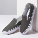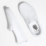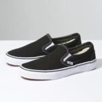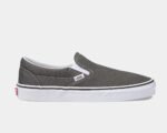 The Vans Classic Slip On is one of the most sought-after slip on shoes of all time. Its original appearance and slim design makes shoe (and skate) junkies drool. The upper is made from canvas with elastic side accents. The Vans Off the Wall outsole and padded collar remain, keeping this shoe a classic. The rubber outsole and vulcanized sole on these men’s large size shoes provide outstanding traction control for all your tricks and turns at the skate park.