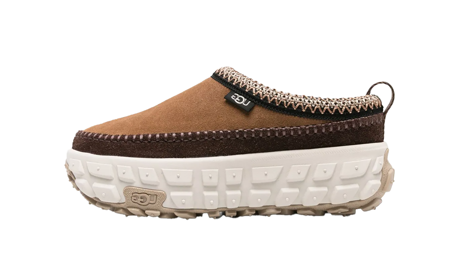 Elevate your comfort game with the UGG Venture Daze “Chestnut Ceramic.” This slip-on mule is a cozy yet rugged update to the classic clog, featuring a soft, rich “Chestnut” suede upper. The standout feature is its durable, sawtooth rubber outsole, which provides excellent grip and a distinct, modern profile. Lined for signature UGG warmth, this shoe blends house-shoe comfort with outdoor-ready durability, making it the perfect casual footwear for versatile, everyday wear.