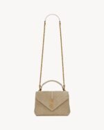 ICONIC SUEDE COLLEGE BAG, FEATURING ICONIC CHEVRON QUILT OVERSTITCHING AND METAL CASSANDRE.