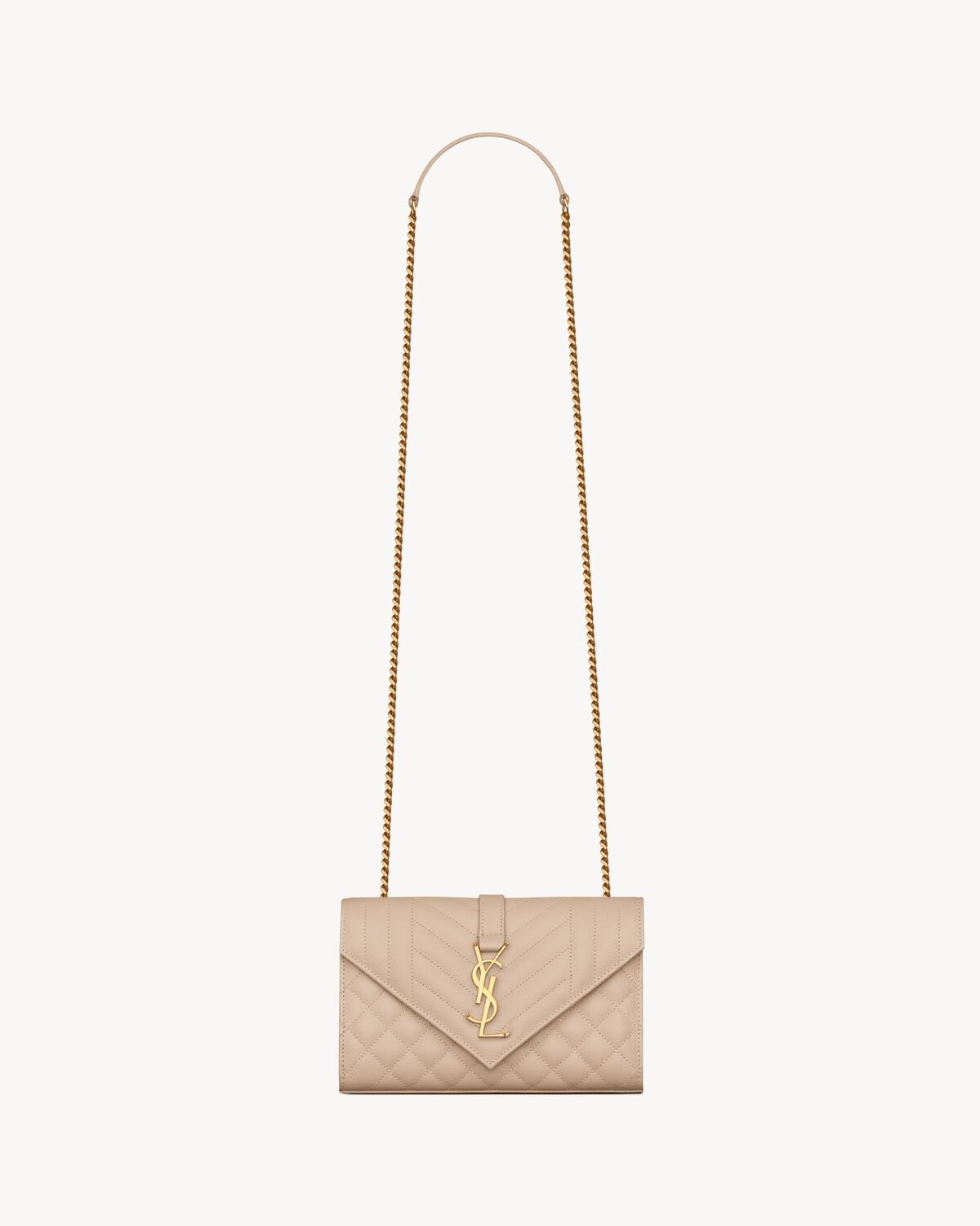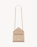 ENVELOPE FLAP BAG IN GRAIN DE POUDRE EMBOSSED LEATHER, FEATURING CHEVRON AND DIAMOND QUILT OVERSTITCHING.