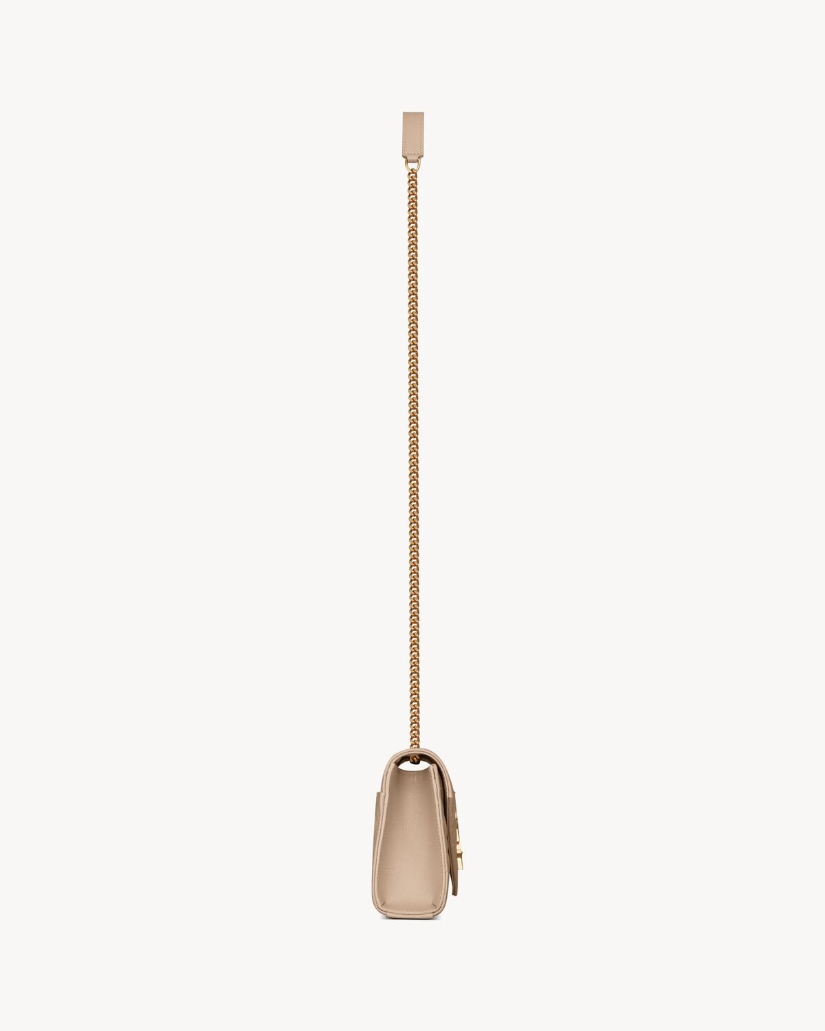 LIGHT, WITH A LONG CHAIN SHOULDER STRAP TO GO FROM DAY TO NIGHT.