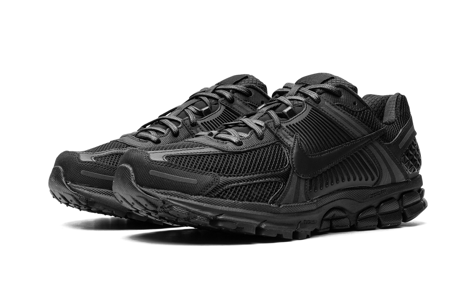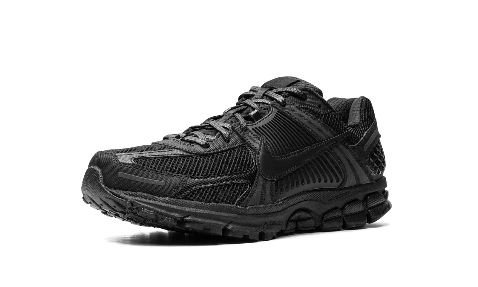 The Nike Zoom Vomero 5 “Triple Black” is an all-black colorway of the classic and ultra-comfortable running shoe. First released in 2010, Zoom Vomero 5 was re-introduced as a lifestyle shoe via a collaboration with Samuel Ross’s *A COLD WALL clothing brand in 2018, and again beginning in 2022 as part of the Y2K-inspired sneaker trend. The popular shoe is released in a monochromatic black colorway here. The upper features a black mesh construction with black overlays throughout the design. A black leather Swoosh appears on both sides of the shoe. “Nike Vomero 5” branding is found on the tongue. The shoe features Zoom Air cushioning within its foam midsole for all-day comfort. Release date: September 20, 2023